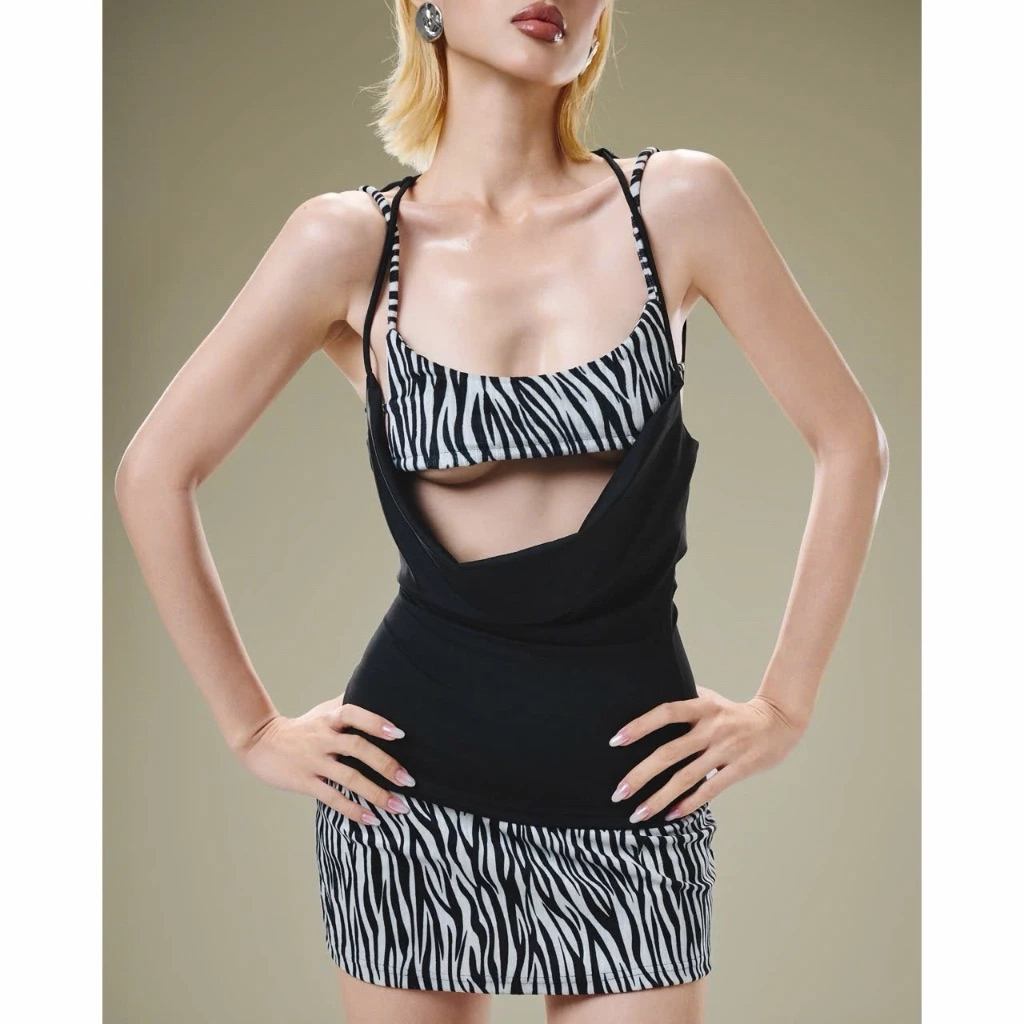 Pre-order (14-20days) แบรนด์เวียดนาม 🇻🇳 Urban Shift | Zebra Set - Layered top and zebra print skirt-pants set🦓