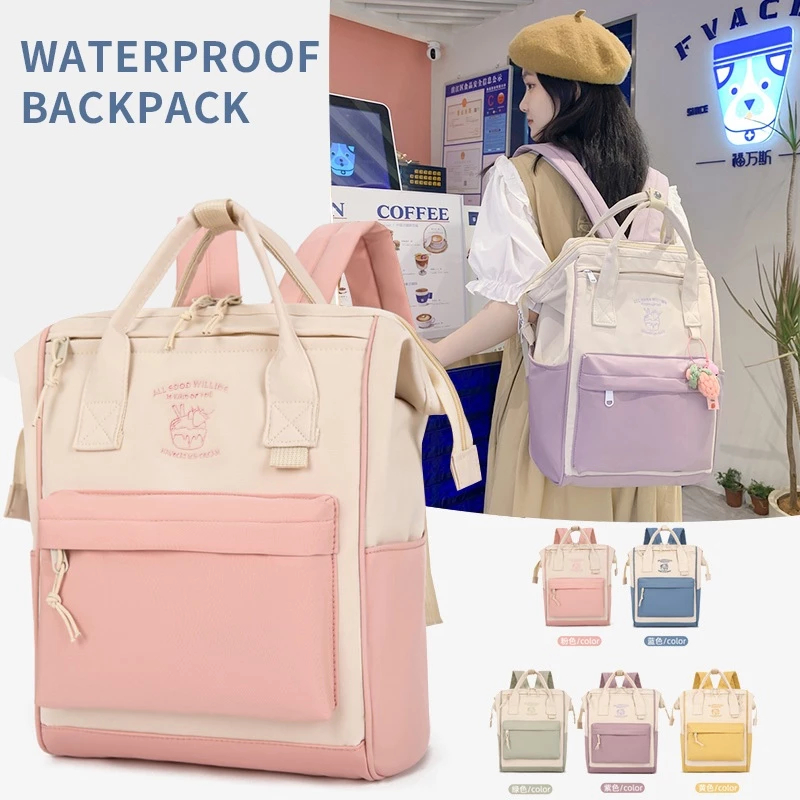 กระเป๋าเป้สะพายหลังไนลอนสำหรับนักเรียนมัธยมปลาย น่ารัก อินเทรนด์ และกันน้ำ