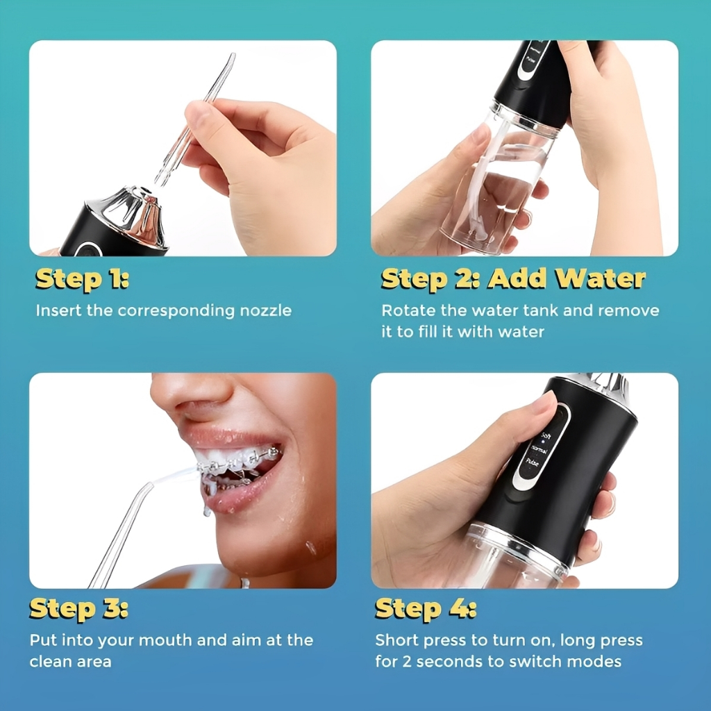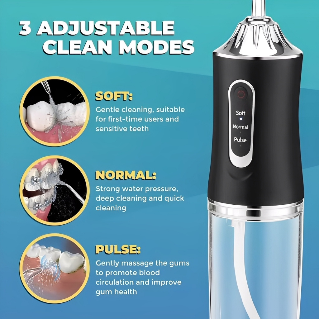 ไหมขัดฟันพลังน้ำ Water flosser 240 ML ครบชุด แรงดันน้ำ 80-120 PSI ไหมขัดฟัน ที่ขูดหินปูน เครื่องฉีดฟัน