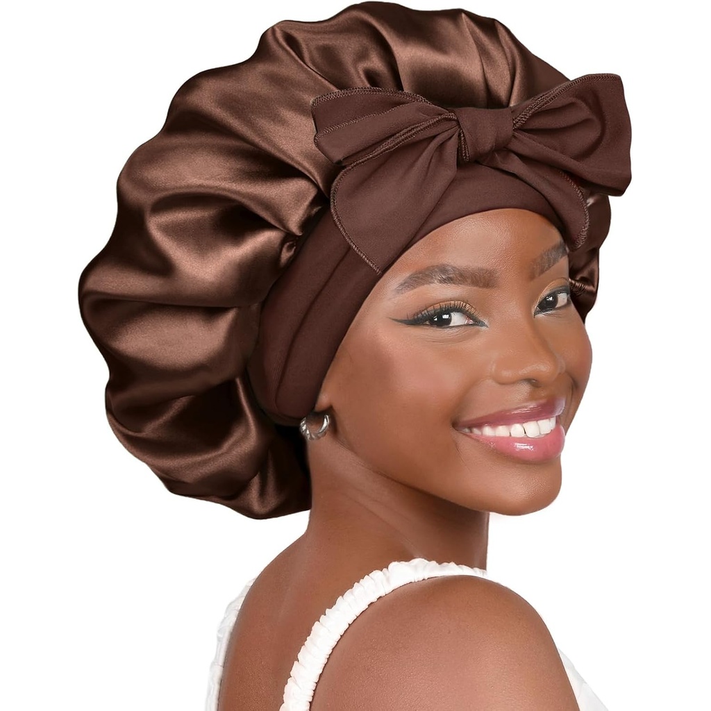 YANIBEST ซาติน Bonnet ผ้าไหม Bonnet สําหรับ Sleeping Double Layer ซาตินเรียงราย Hair Bonnet พร้อม Tie Band สําหรับผู้หญิงผมหยิก