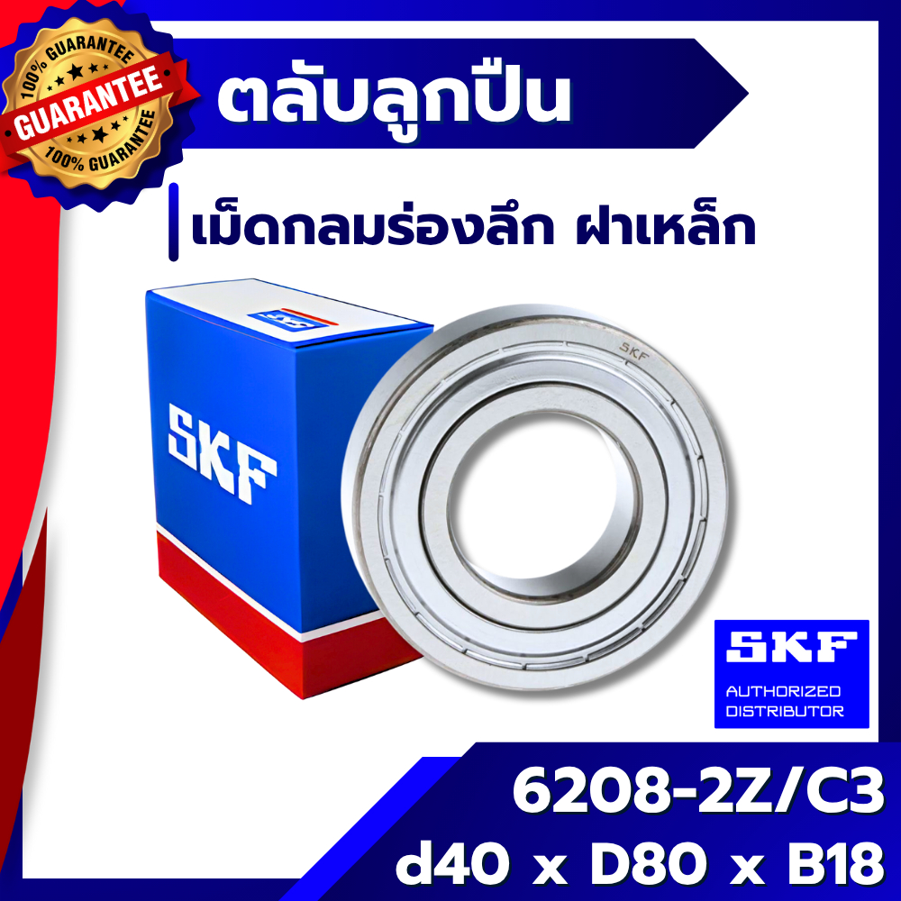 6208 2Z / C3 SKF ตลับลูกปืนเม็ดกลมร่องลึก ฝาเหล็ก 6208-2Z / C3 SKF