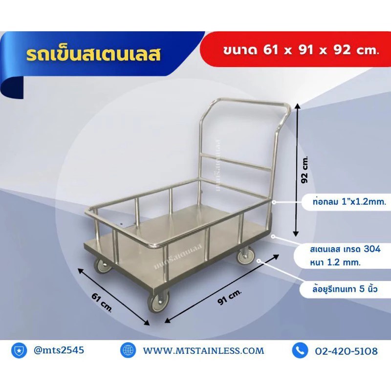 รถเข็นสเตนเลส_เกรด304_ขนาด61*91*92ซม.