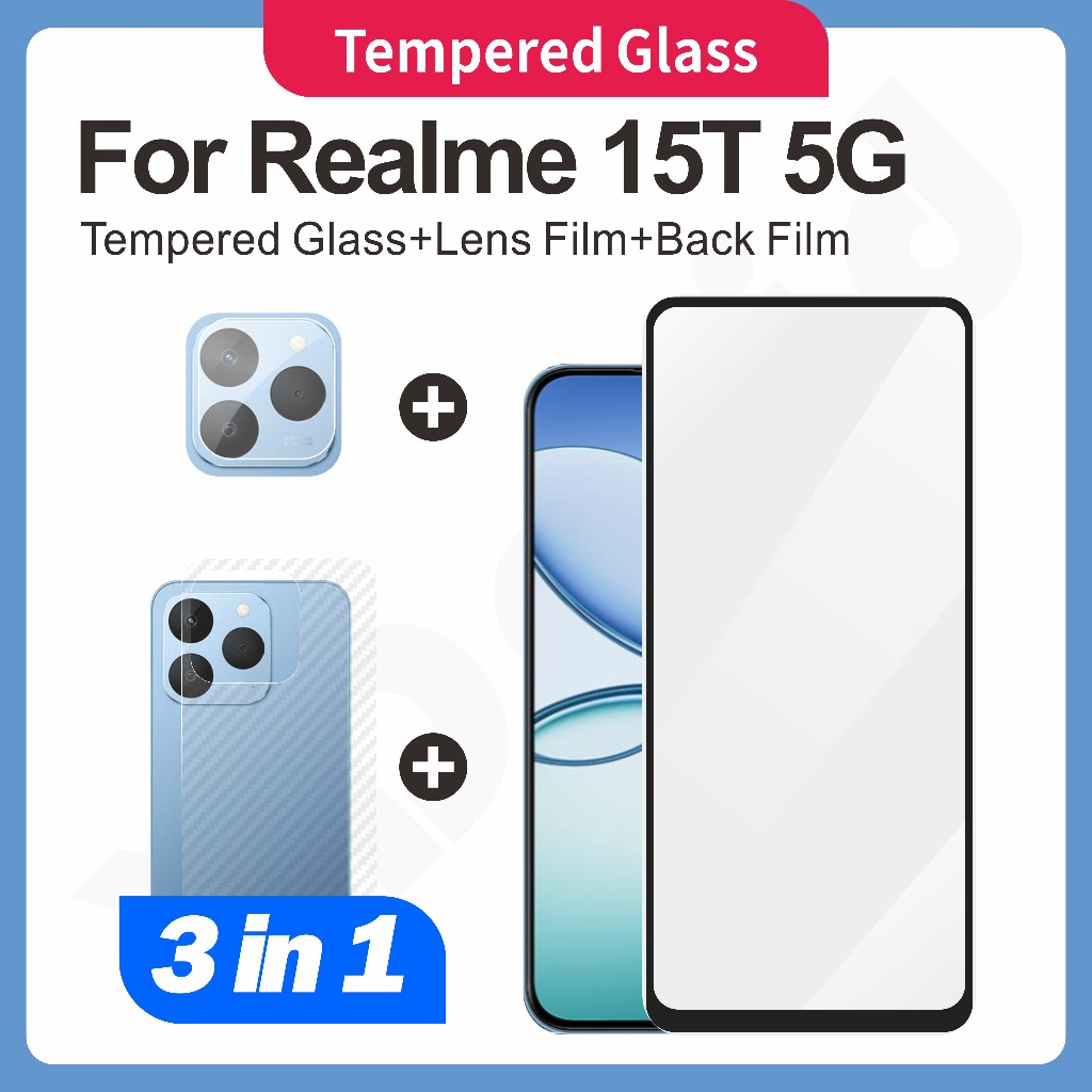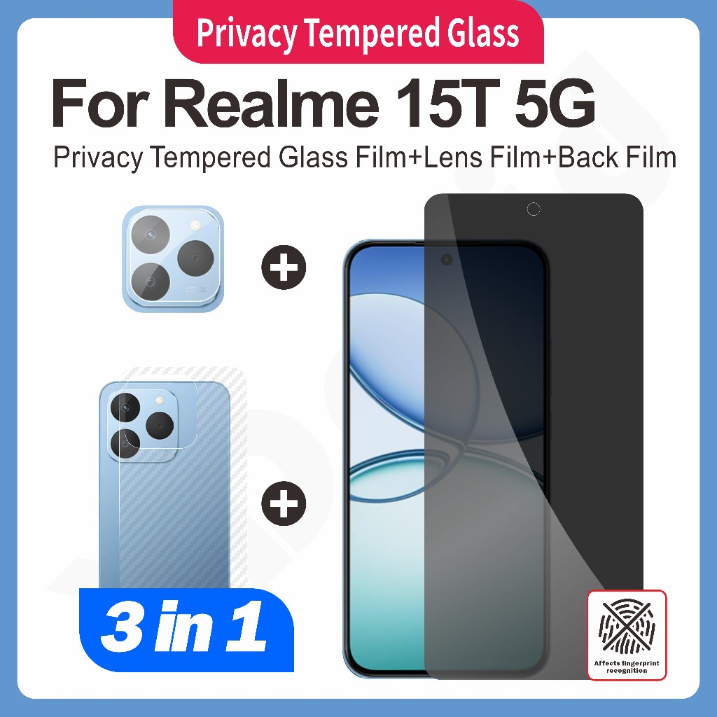 (3 In 1) กระจกนิรภัยสําหรับ Realme 15T 5G ป้องกันหน้าจอความละเอียดสูง frosted ความเป็นส่วนตัวเซรามิคฟิล์มนุ่ม + ฟิล์มเลนส์กล้อง + ฟิล์มด้านหลังคาร์บอนไฟเบอร์ไม่มีหนู