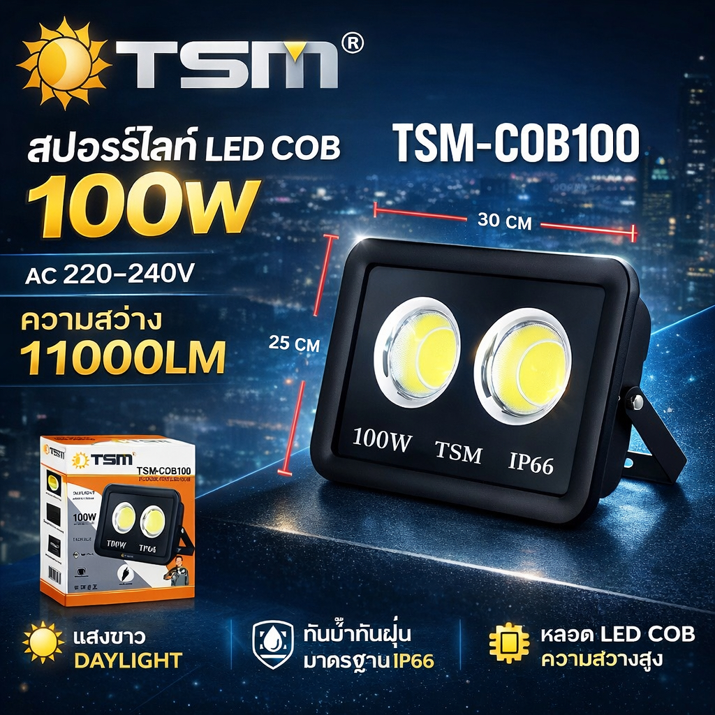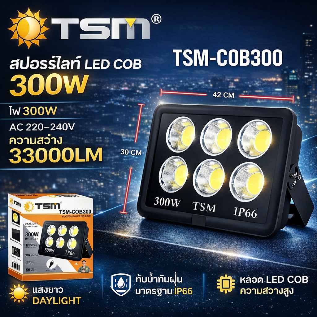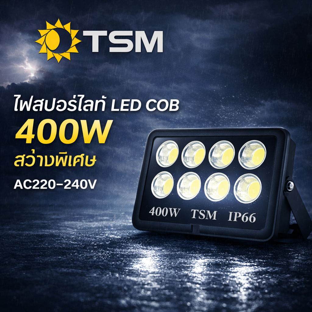 ไฟสปอร์ตไลท์ LED COB 400W สว่างพิเศษ กันน้ำ IP66 ใช้งานกลางแจ้ง โกดัง ฟาร์ม สนามกีฬา