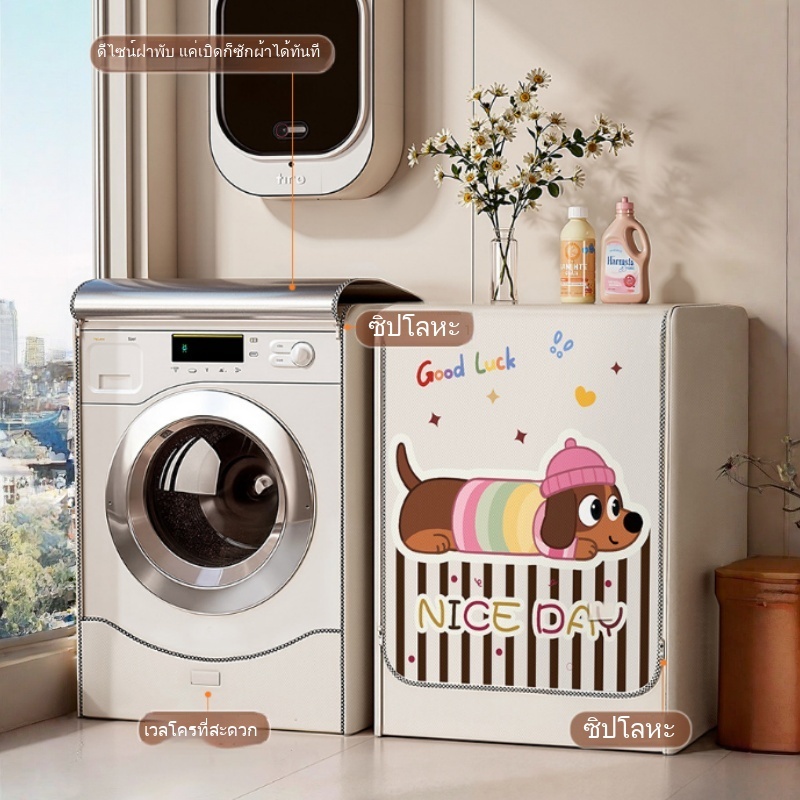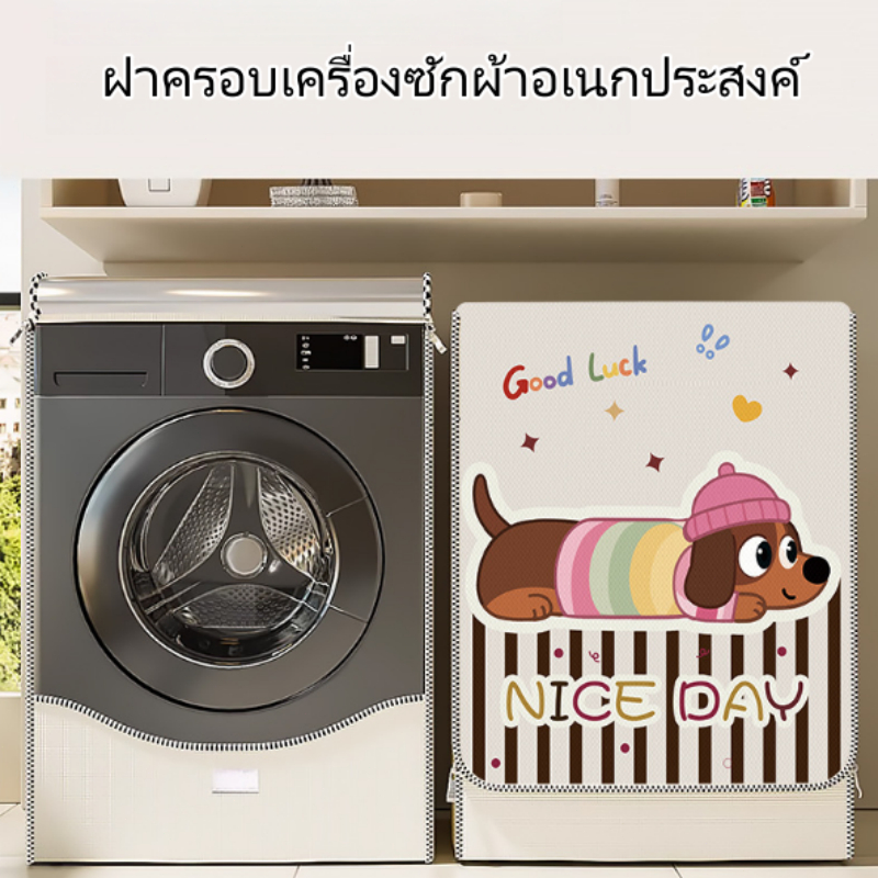 [พร้อมส่งจากไทย] ผ้าคลุมเครื่องซักผ้าฝาหน้า ผ้าคลุมเครื่องซักผ้า ภาพการ์ตูน กันน้ำกันแดด กันฝนสาด ทนทานไม่เปื่อยง่าย
