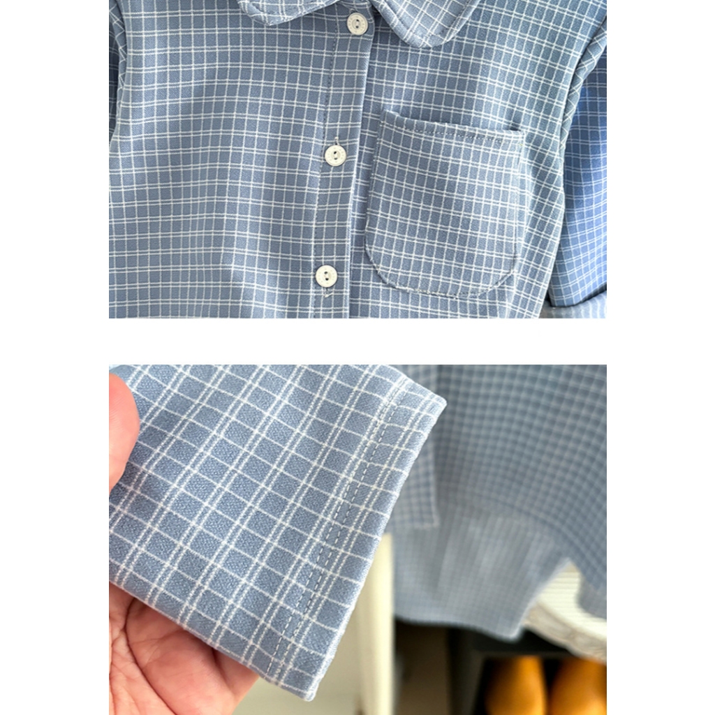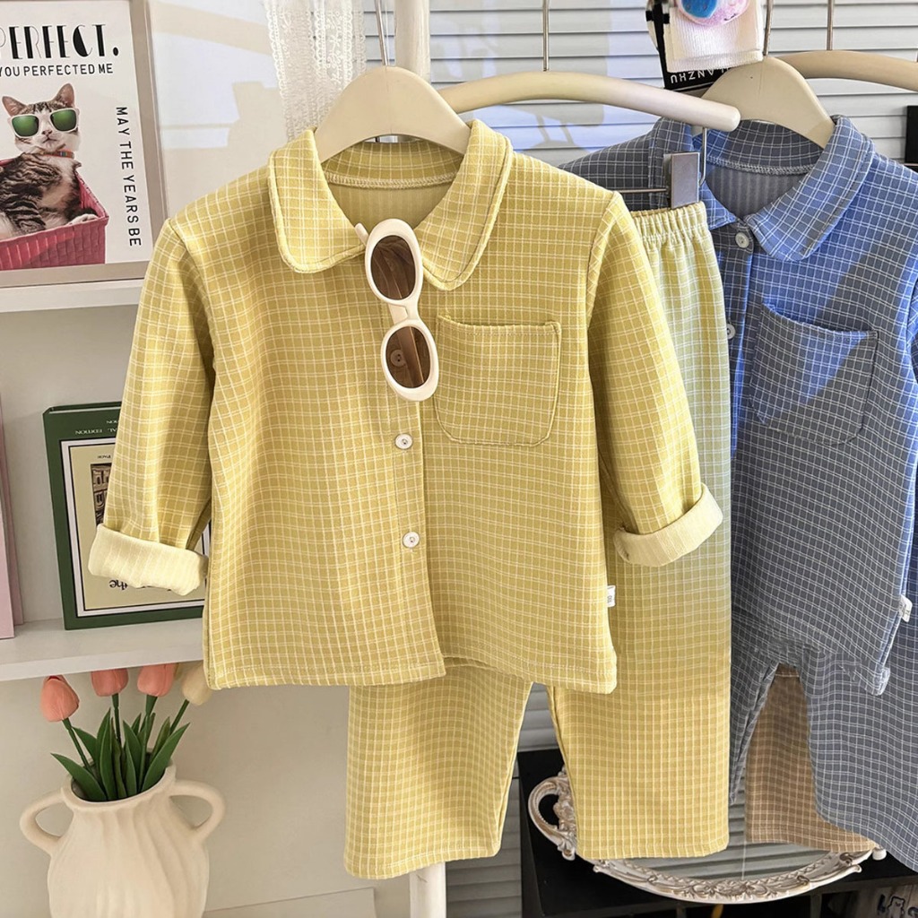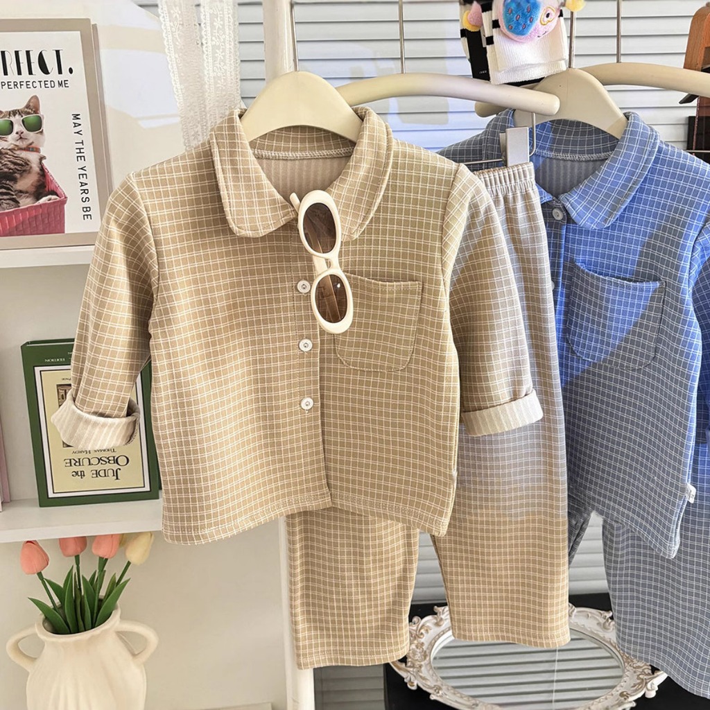 ชุดนอนชุดลำลองเด็ก ชุดลำลองเซ็ต ผ้านุ่มใส่สบาย ลายสก๊อต สีพื้น ลำลอง ไซส์ 90-120