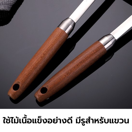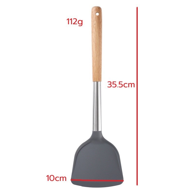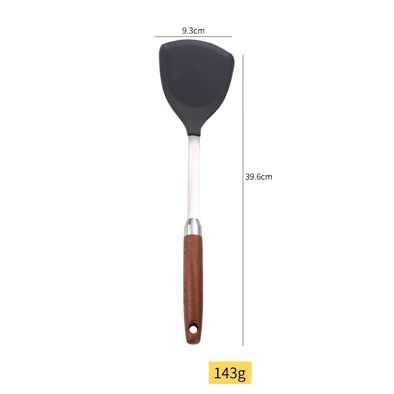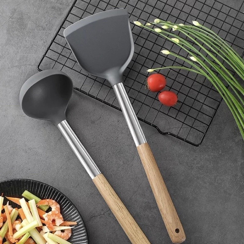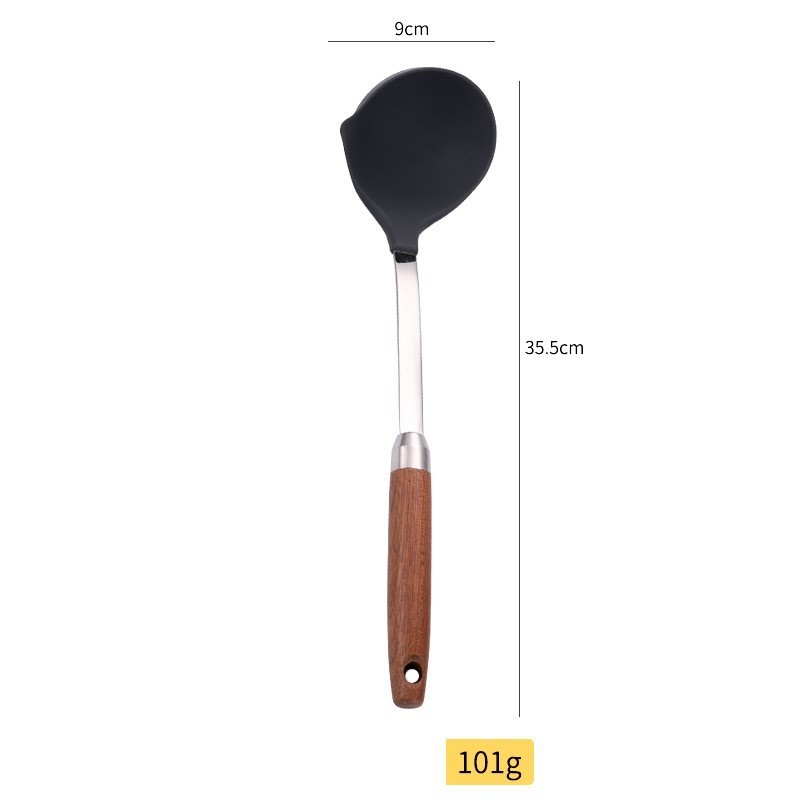 ตะหลิวซิลิโคน กระบวยซิลิโคนด้ามไม้ เครื่องครัวซิลิโคนคุณภาพสูง