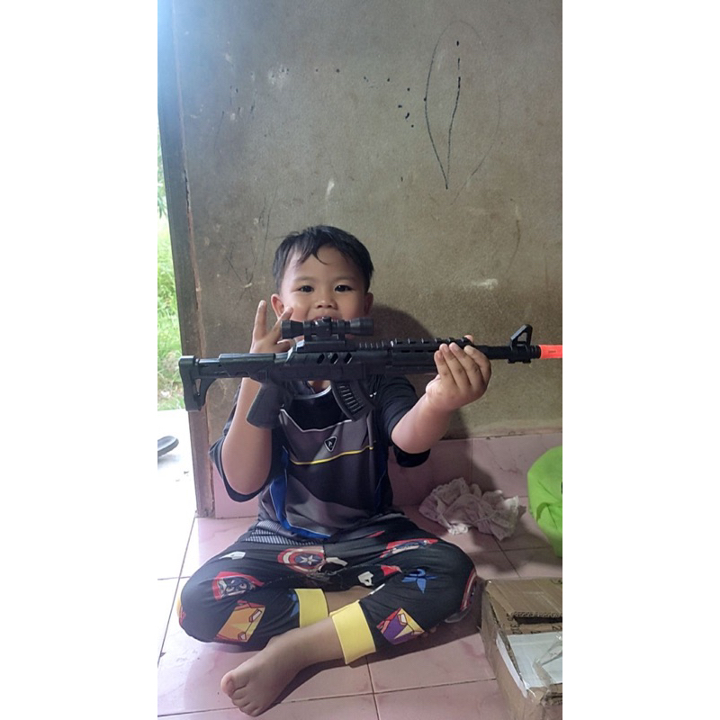 ของเล่นปืนพลาสติกสีดำล้วน มีเสียง