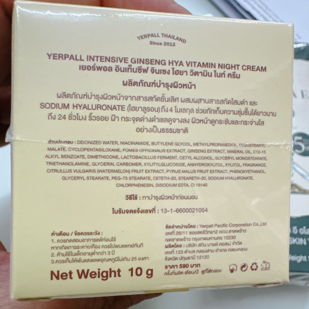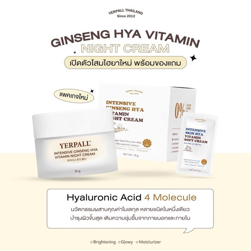 ครีมโสมไฮยา 10g. YERPALL Intensive Ginseng Hya Vitamin Night Cream ครีมโสมสตอ โสมไฮยา