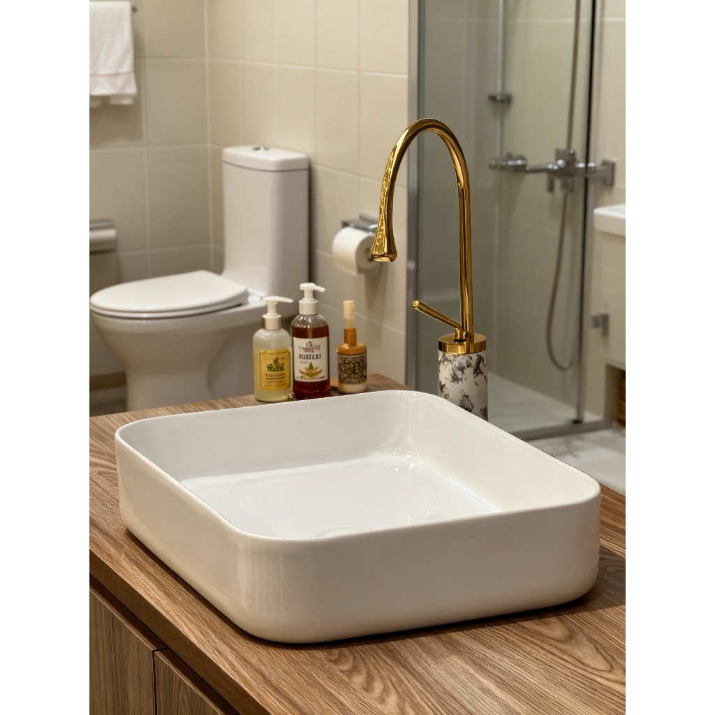 อ่างล้างหน้าแบบวางบนเคาน์เตอร์ อ่างล้างหน้าตั้งโต๊ะเซรามิก ทำความสะอาดง่าย สีขาว/เทาอ่อน ceramic wash basin