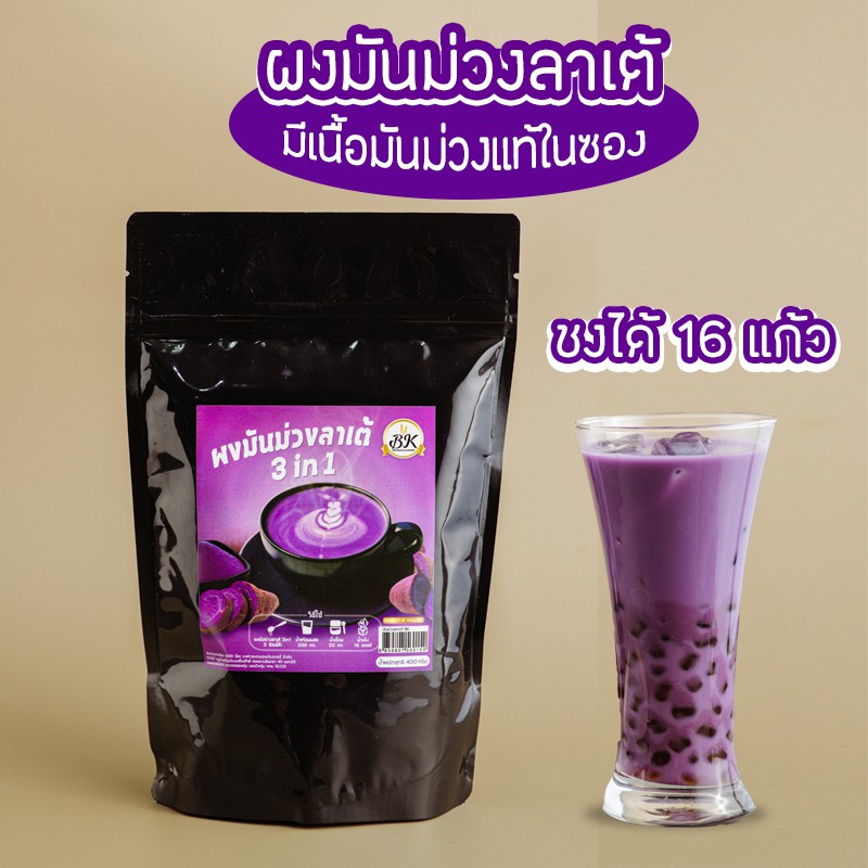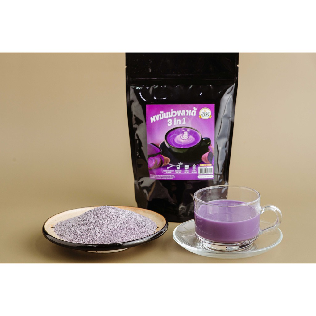 ผงมันม่วงลาเต้3in1 มีเนื้อมันม่วงแท้ผสม