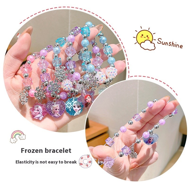 สร้อยข้อมือลูกปัดเจ้าหญิงเอลซาแช่แข็ง แบบการ์ตูนคริสตัล เหมาะสำหรับเด็กผู้หญิง