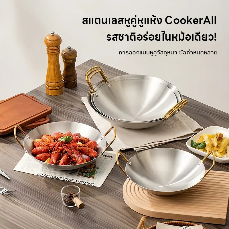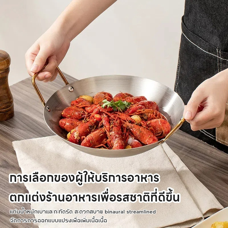 22/24/26/28/30/32/34/36/38/40/43/45/47/50cmซม กระทะสแตนเลส กระทะผัด สแตนเลส 304 กระทะทอด กระทะไม่ติด
