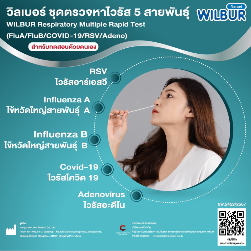 Wilbur ชุดตรวจ 5in1 โควิด/RSV/ไข้หวัดใหญ่/Adeno ตรวจจับเชื้อไวรัส ทั้ง 5 ชนิด ได้ในครั้งเดียว