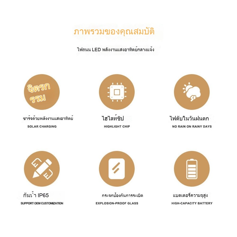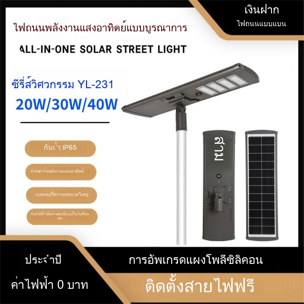 ไฟถนนพลังงานแสงอาทิตย์ ไฟถนนพลังงานแสงอาทิตย์แบบรวม ไฟพลังงานแสงอาทิตย์แบบหล่อขึ้นรูป สำหรับภายนอก กันน้ำและกันฟ้าผ่า ไฟ