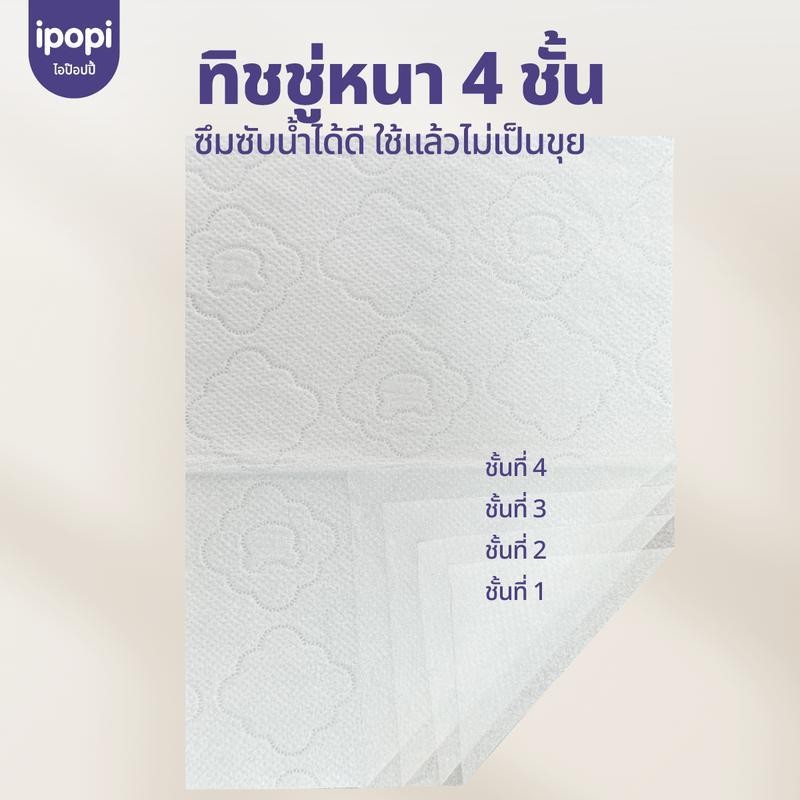 【6 ห่อ】ipopi กระดาษทิชชู่แบบแขวนผนังหนานุ่ม ยืดหยุ่น หนา 4 ชั้น มีจำนวนแผ่น 800 แผ่น/ห่อ ใช้งานง่าย