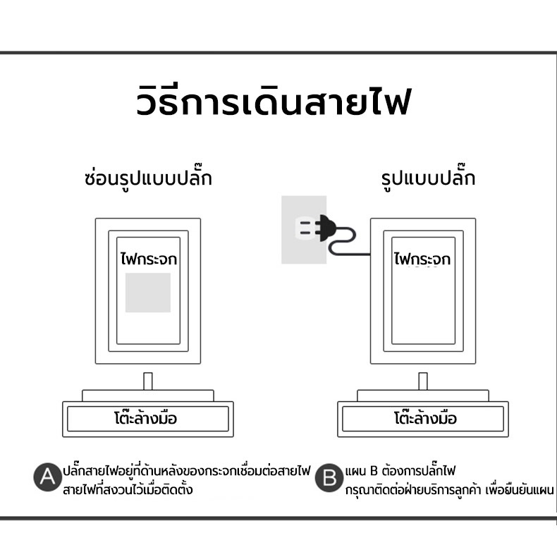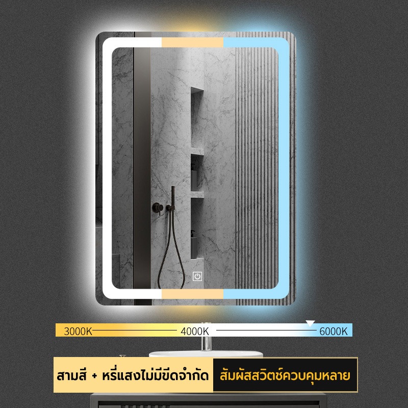EGNS กระจกห้องน้ำสี่เหลี่ยม ควบคุมด้วยการสัมผัส แสงสามสี ขนาด 60*80/70*90/75*100ซม 80*60/90*70/100*75 ซม