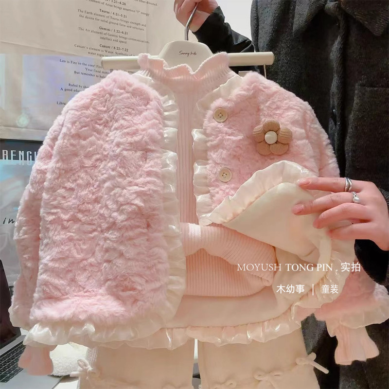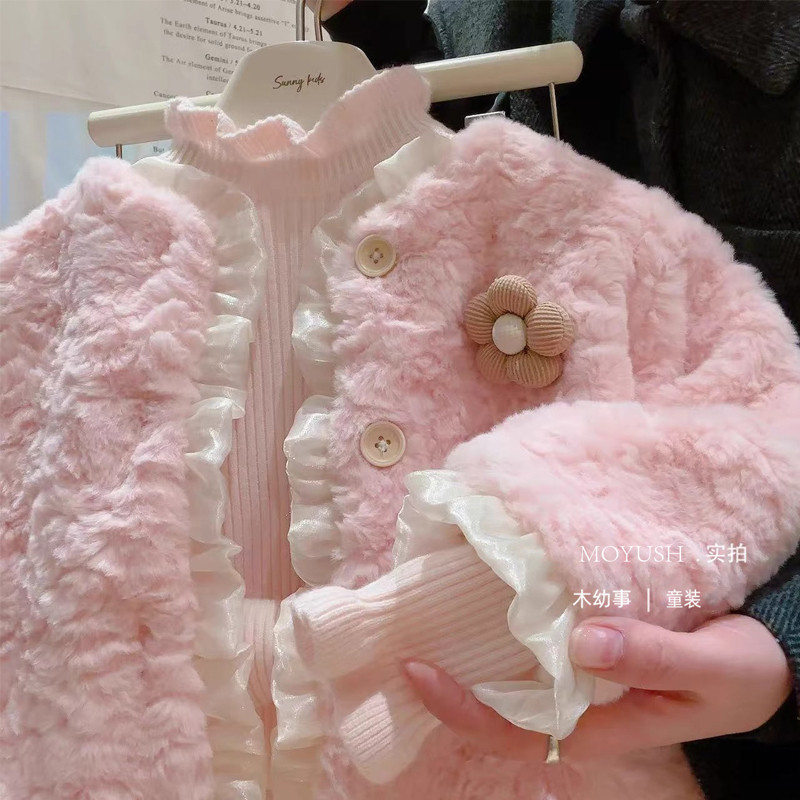 แจ็คเก็ตขนสัตว์แฟชั่นฤดูหนาว 2024 ซับในขนแกะและแบบควิลท์ สำหรับเด็กสาว
