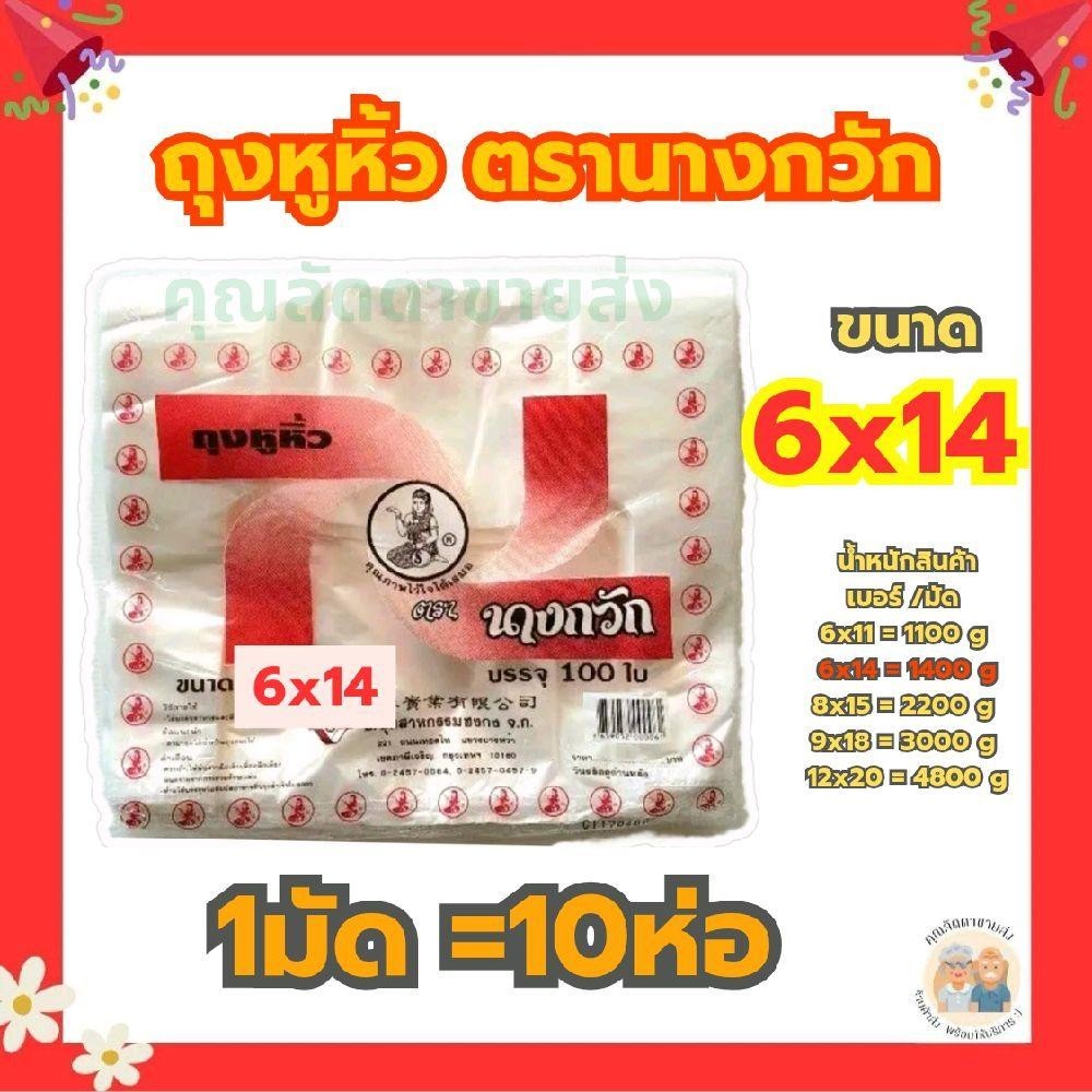 ยกมัด ถุงหูหิ้วตรานางกวัก ขนาด 6×14 (1มัด=10ห่อ)