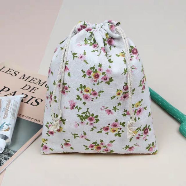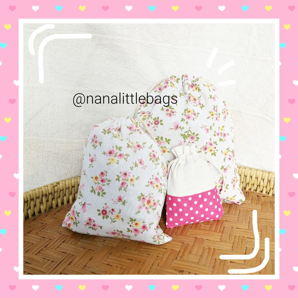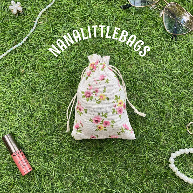 ถุงผ้าหูรูดลายดอกไม้ ถุงผ้าอเนกประสงค์ ของแจกปัจฉิม ของชำร่วย