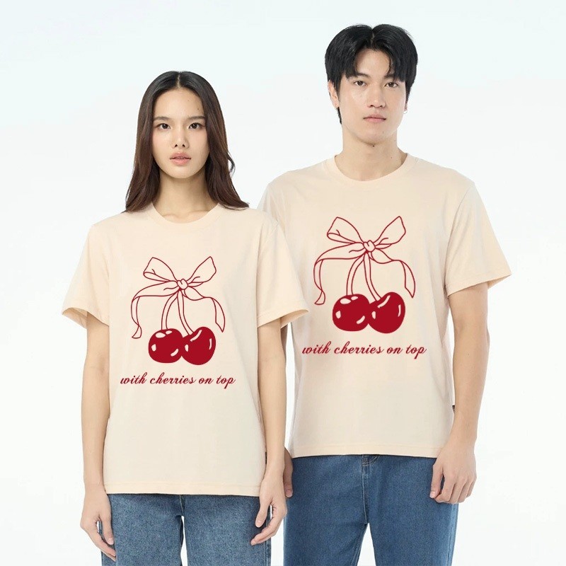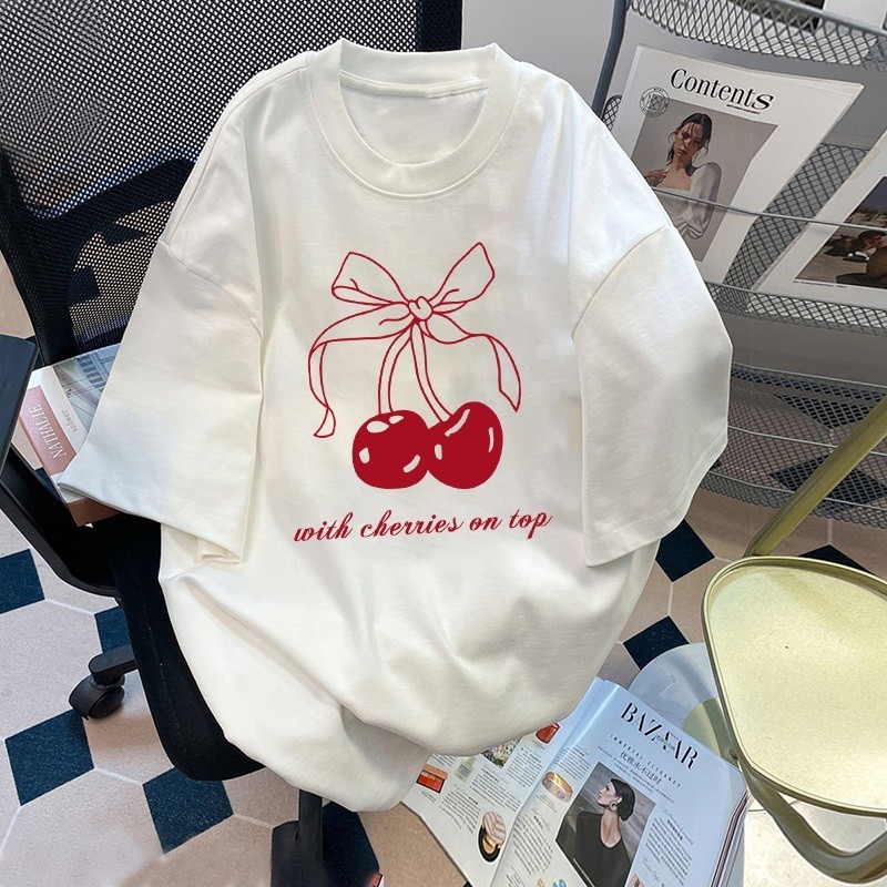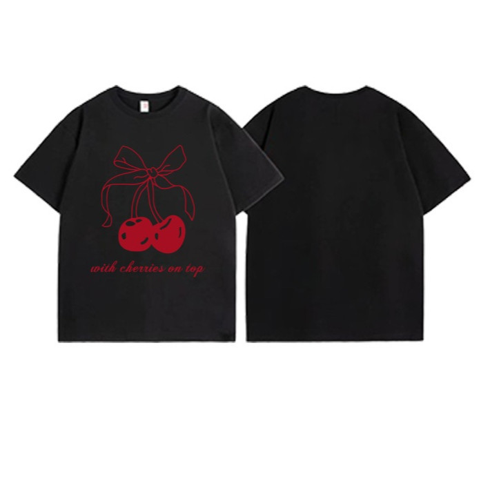 เสื้อยืด เสื้อ oversize red bow / สีแดง โบว์ พิมพ์ คอกลม แขนสั้น ทรงหลวม มินิมอล เสื้อแฟชั่น สไตล์