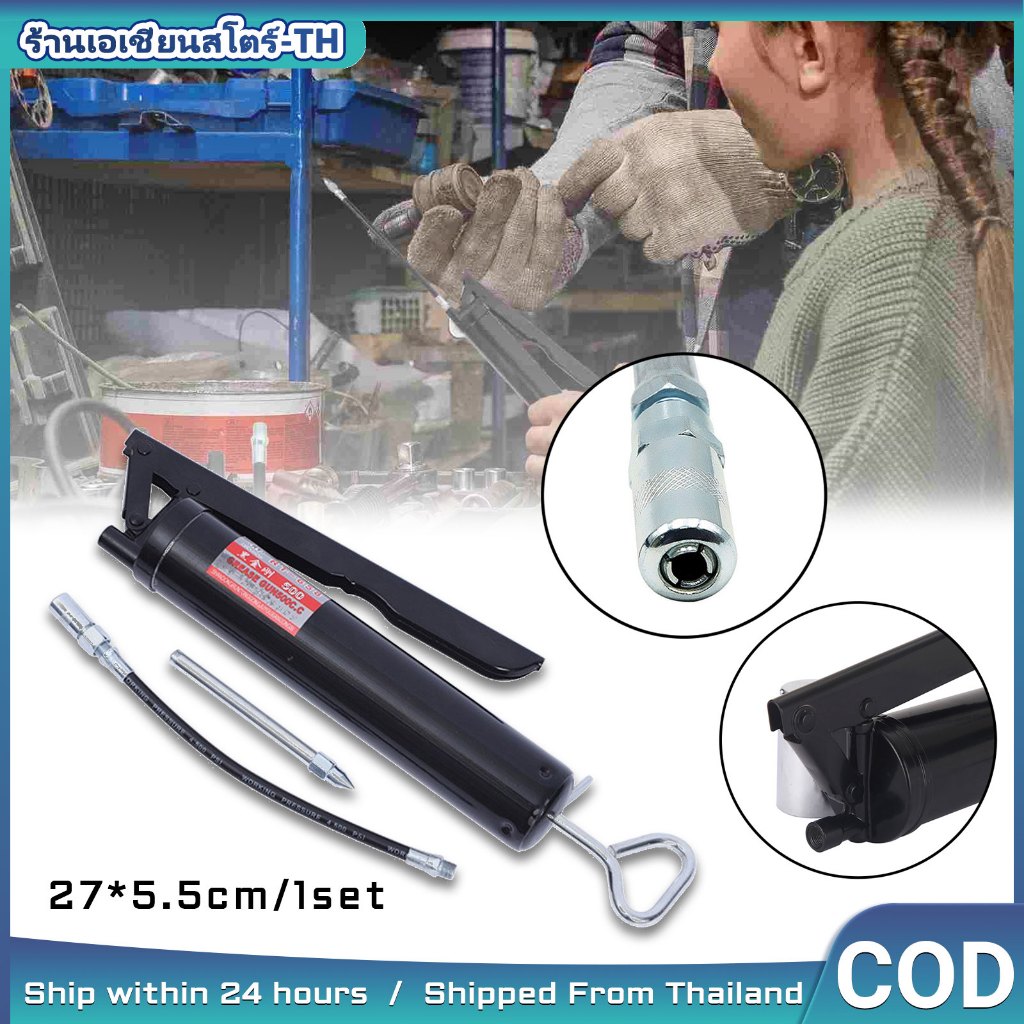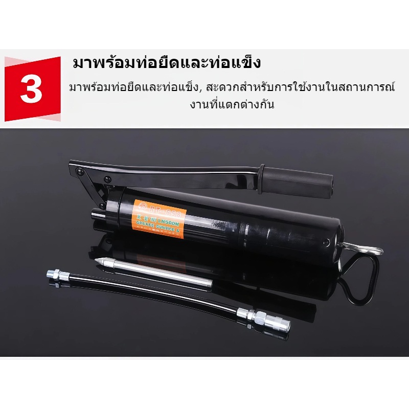 【กระบอกอัดจาระบี 500 ซีซี】แบบมือโยก แรงดันสูง มาพร้อมสายอ่อนและสายแข็ง ปืนอัดจาระบีสำหรับช่าง เครื่องมือหล่อลื่นรถยนต์ เ