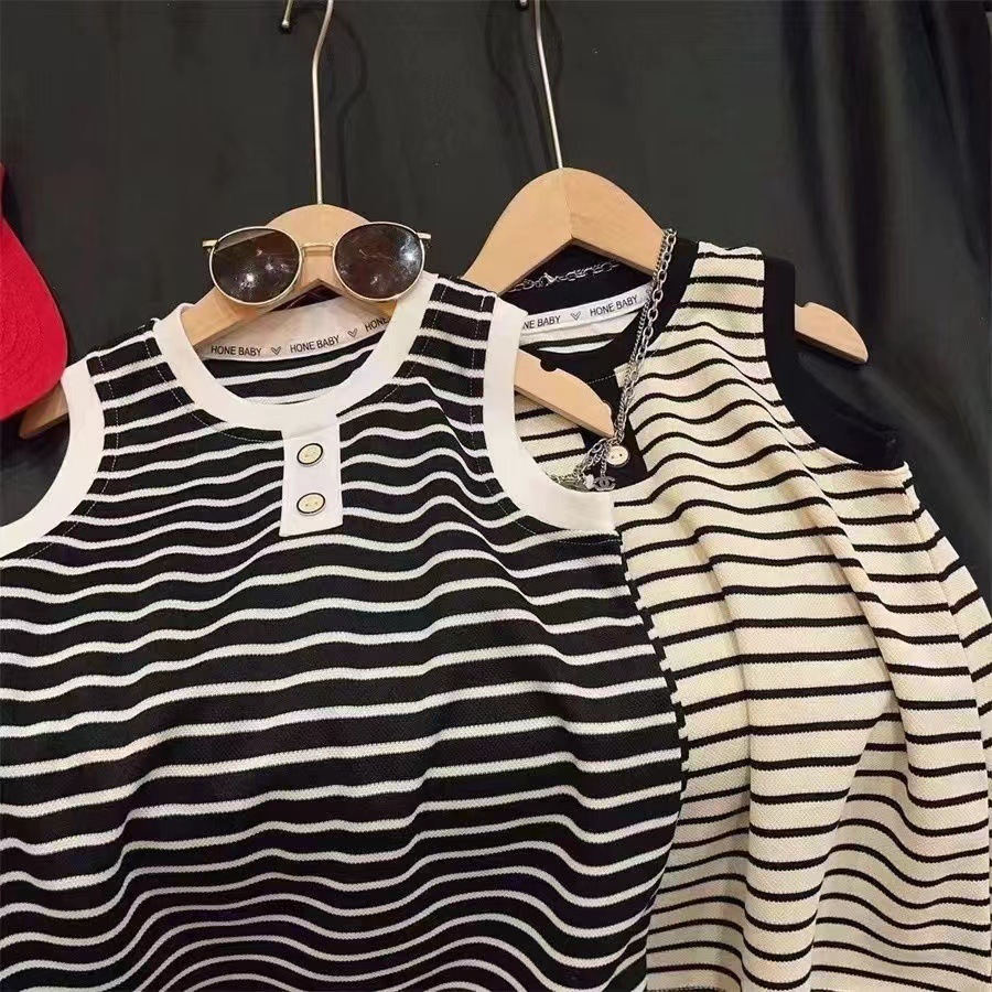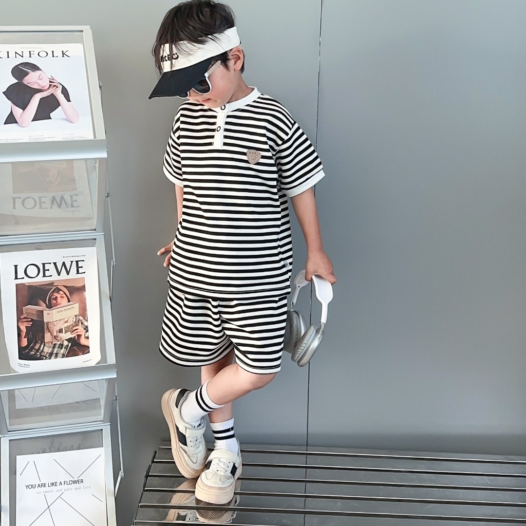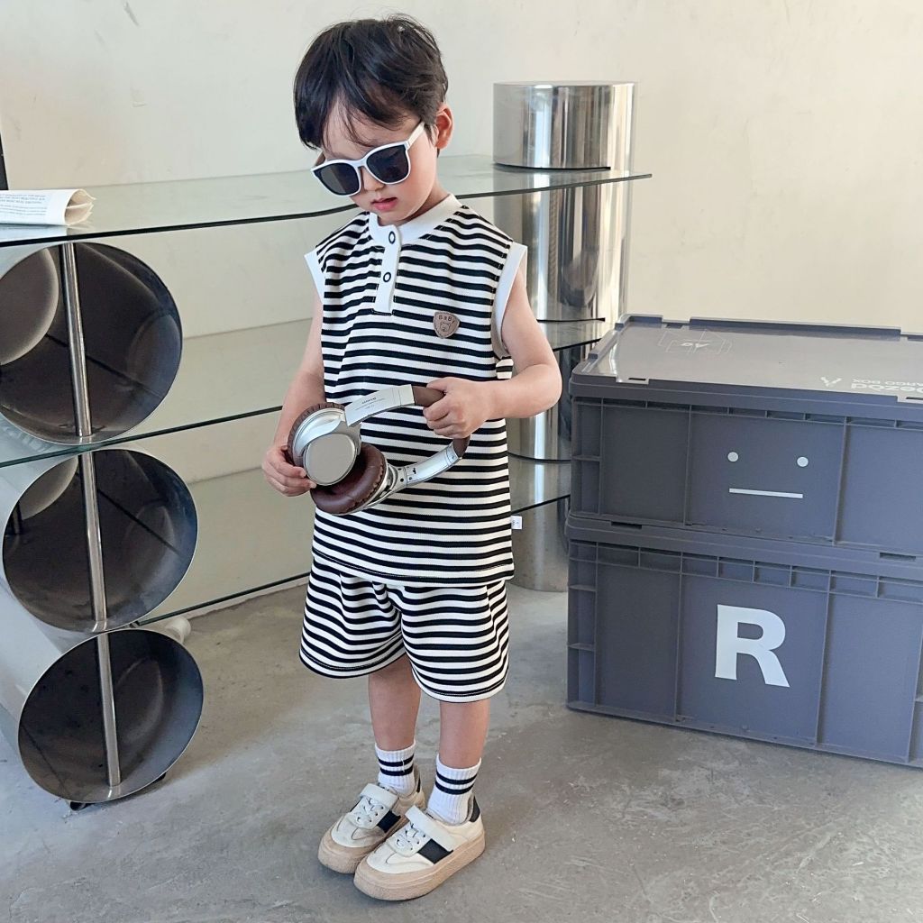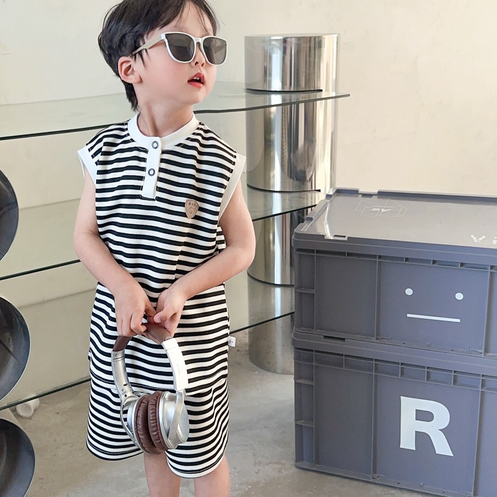 Babyonline(Y404)D3 (ส่งด่วน1วัน)ชุดเดรสโปโลลายทางเด็กผู้หญิง ชุดเซ็ตเสื้อกางเกงขาสั้นลายทางเด็กผู้ชายผู้หญิง ใส่สบาย