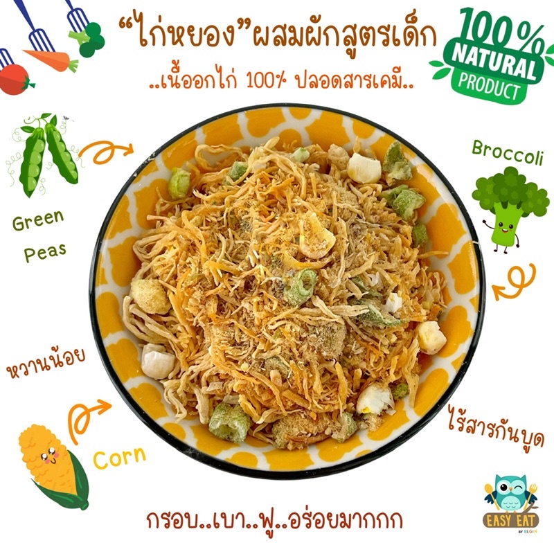 Easy Eat ไก่หยองผสมผักสูตรเด็ก มีโปรตีน วิตามินสูง กรอบฟู หวานน้อย โซเดียมต่ำ ไม่มีผงชูรส ไร้วัตถุกันเสีย