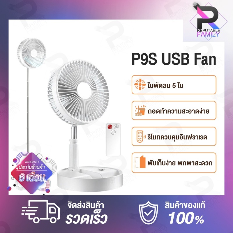 พัดลมไร้สาย P9S/P10/P10S Fan พัดลมพกพา usb แบบพกพาพับได้ พัดลมตั้งพื้นไร้สาย