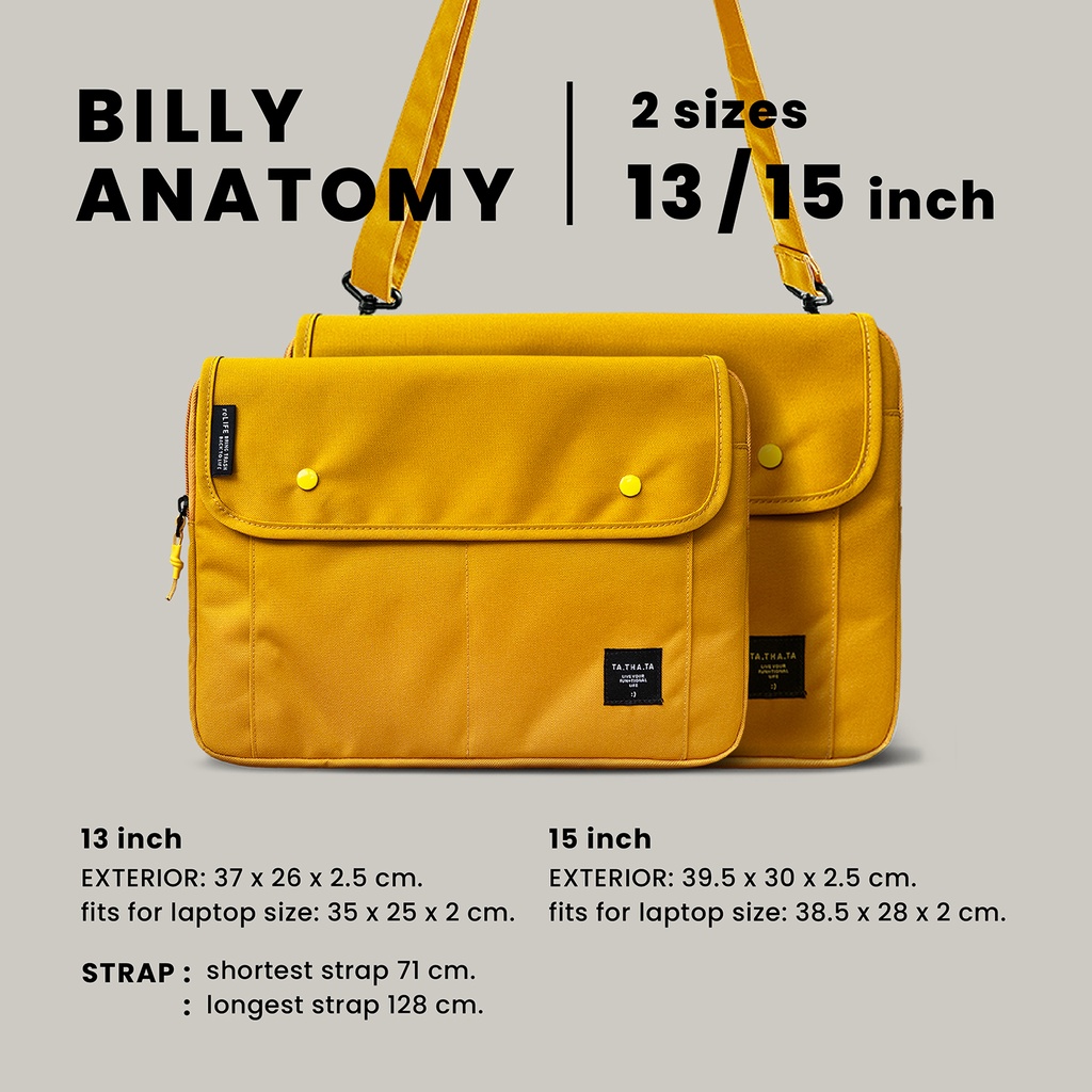 Billy relife mustard laptop sleeve 13"/ 15" กระเป๋าใส่แลปทอป รุ่นบิลลี่ สีเหลืองไซส์ 13 นิ้ว และ 15 นิ้ว