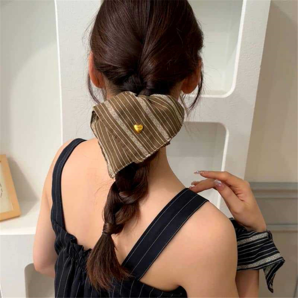 จีบลายรักผมผูกผมหางม้าสูงแถบคาดศีรษะยืดหยุ่นสไตล์วรรณกรรมอ่อนโยน การสื่อสาร เครื่องประดับผมสําหรับผู้หญิง