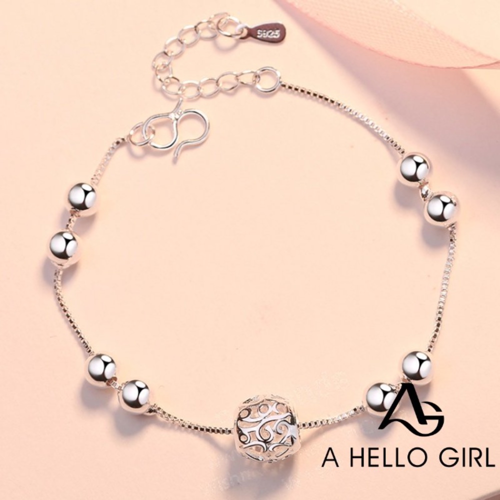 A HELLO GIRL สร้อยข้อเท้าเงิน 925 ทรงกลม กลวง สวยหรู เครื่องประดับแฟชั่นเกาหลี ของขวัญวันเกิด สําหรับผู้หญิง