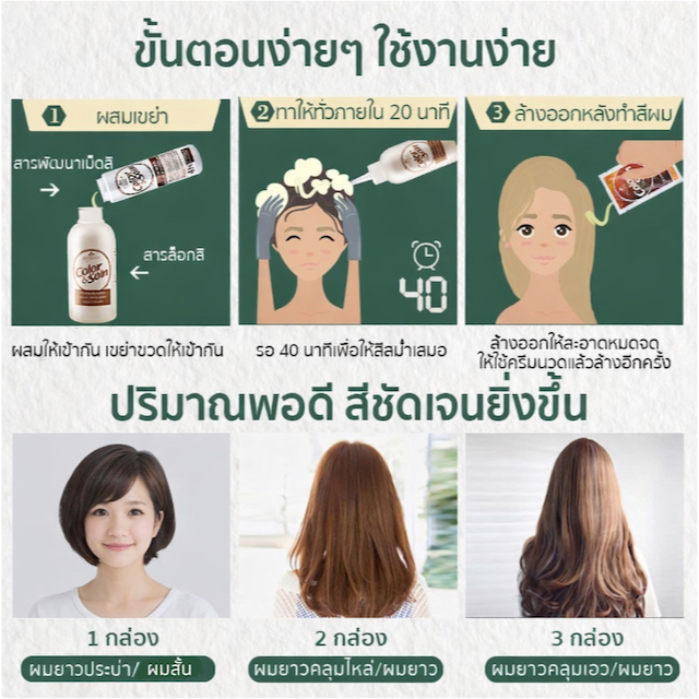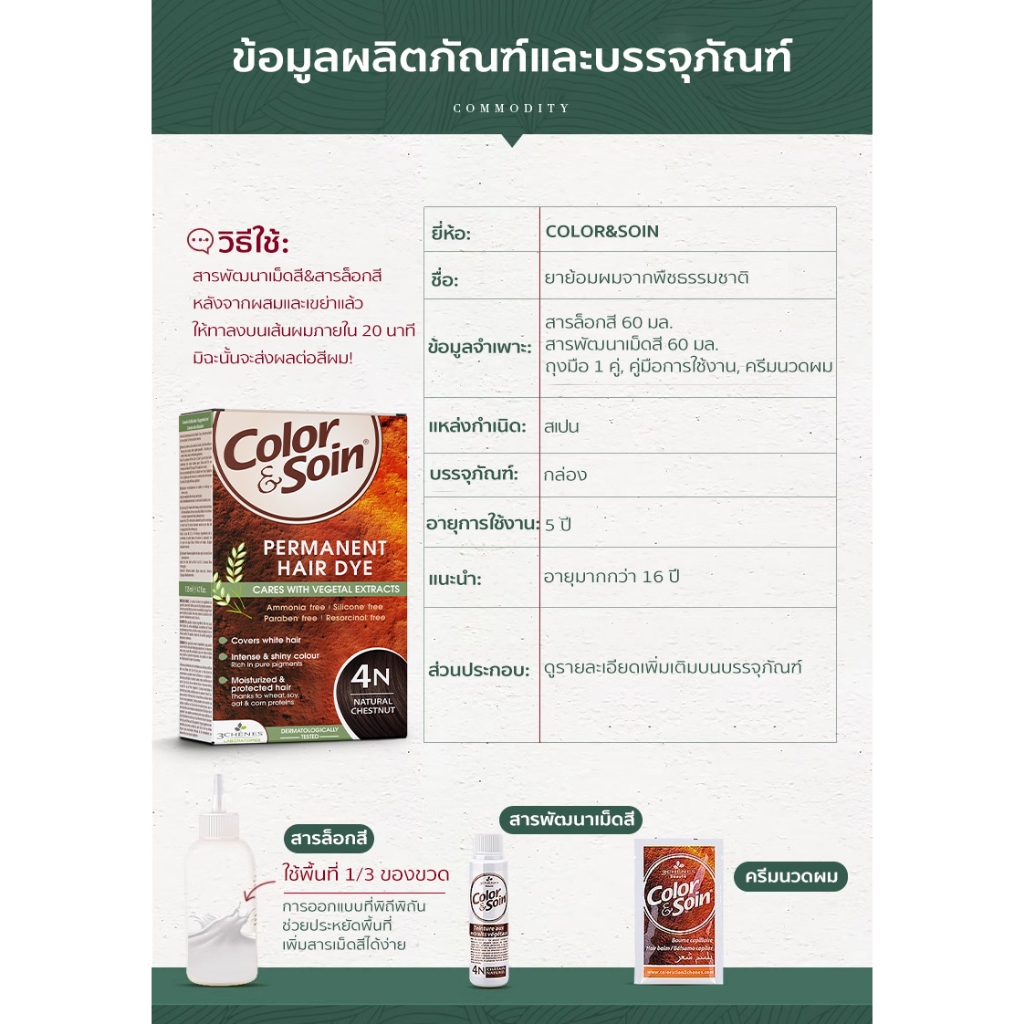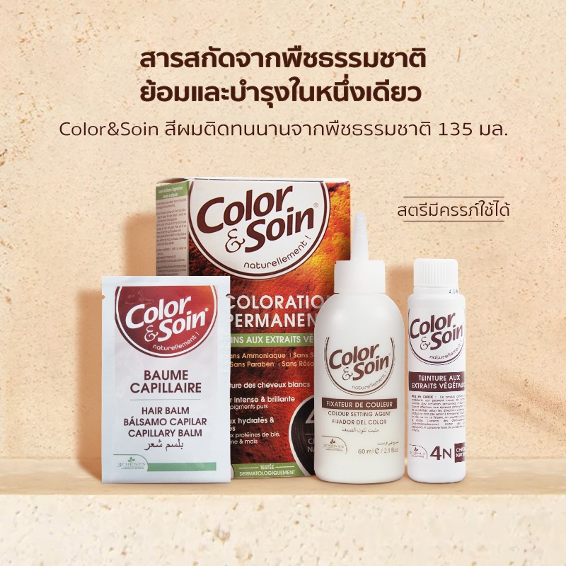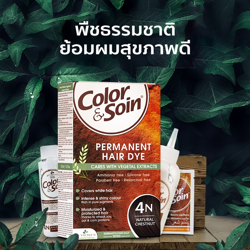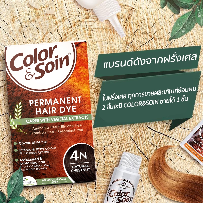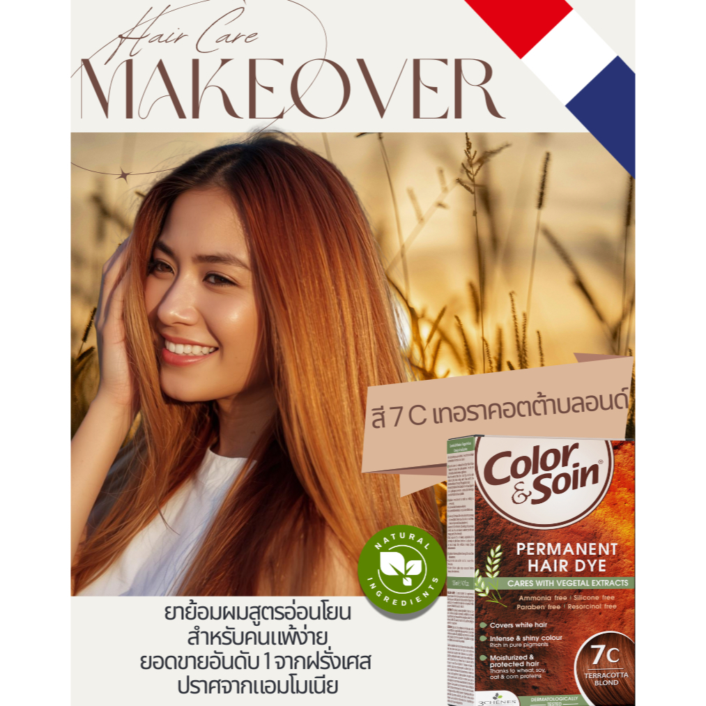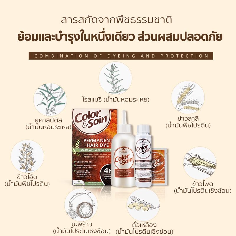 (7C)Color & Soin ยาย้อมผมสมุนไพรไม่มีแอมโมเนีย สีดำ สีน้ำตาลนม สีน้ำตาล สีแดง ทำเองที่บ้าน ติดทน ปิดผมขาว ไม่ทำร้ายผม ไม่แสบหนังศีรษะ
