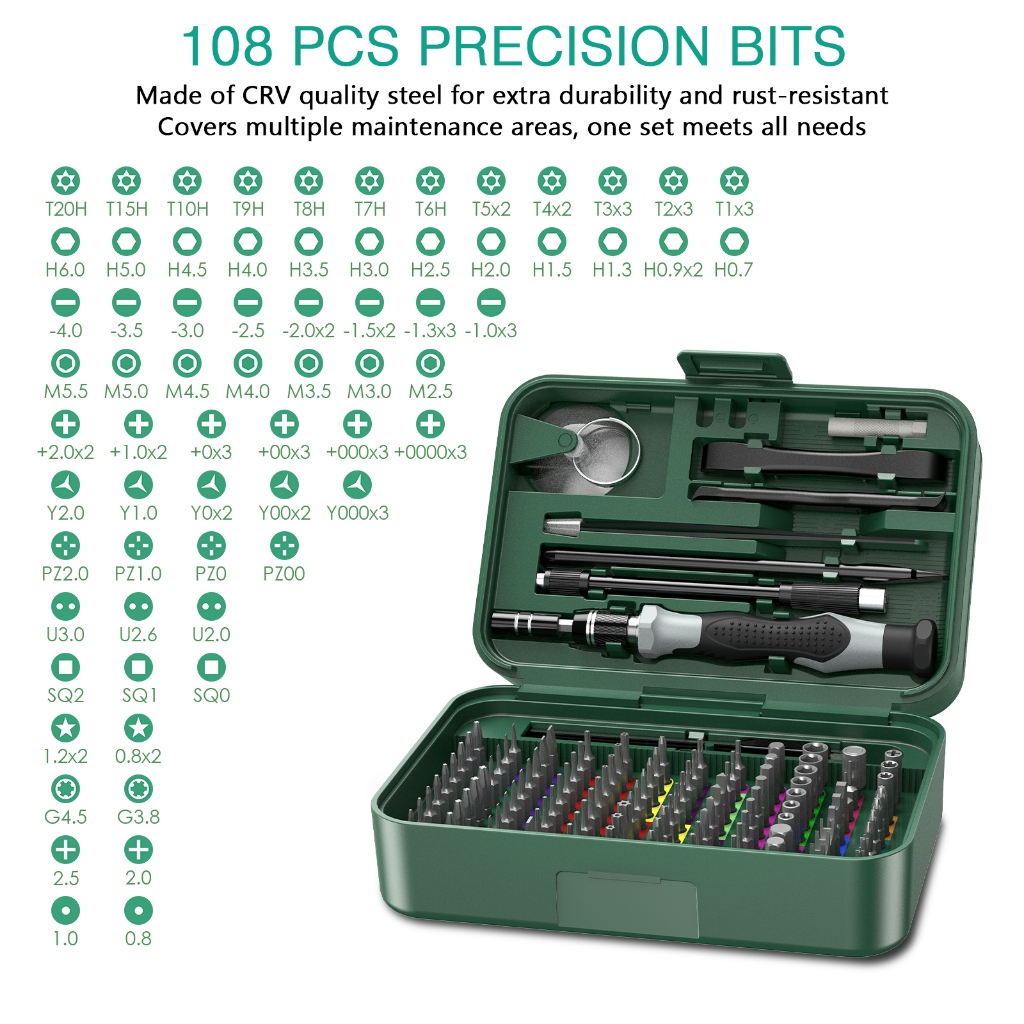 Oria ชุดไขควงซ่อมคอมพิวเตอร์ พร้อมดอกไขควงแม่เหล็ก 108 ชิ้น สําหรับสมาร์ทโฟน แล็ปท็อป นาฬิกา ของเล่น