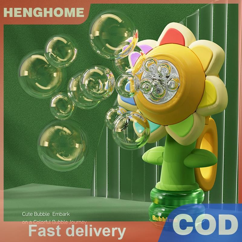 [HENGHOME] เครื่องทําฟองสบู่ไฟฟ้าอัตโนมัติดอกทานตะวันสั่นปรับแสงเต้นรําเครื่องทําฟองสบู่หนึ่งคีย์สําหรับเด็ก [COD]