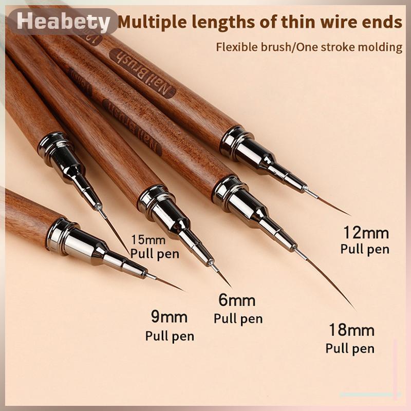 [ Heabety] 1 ชิ้น/เซ็ตไม้ Handle Art Liner DIY จิตรกรรมแปรงวาดเส้นแถบดอกไม้ภาพวาดปากกาเล็บ Liner ชุดแปรง 5 ขนาด [COD]