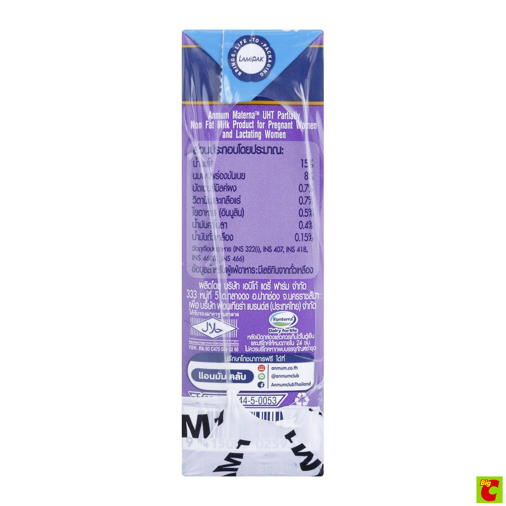 แอนมัม มาเทอร์น่า นมพร่องมันเนย ยูเอชที รสจืด 180 มล. x 3 ชิ้น