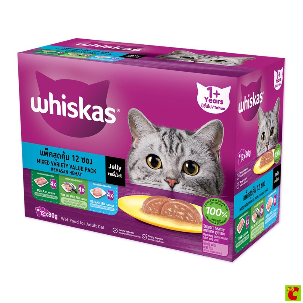 วิสกัส เพาซ์ อาหารแมวชนิดเปียก รสทูน่า/ปลาทะเล/ทูน่าและปลาเนื้อขาว 80 ก. แพ็ค 12