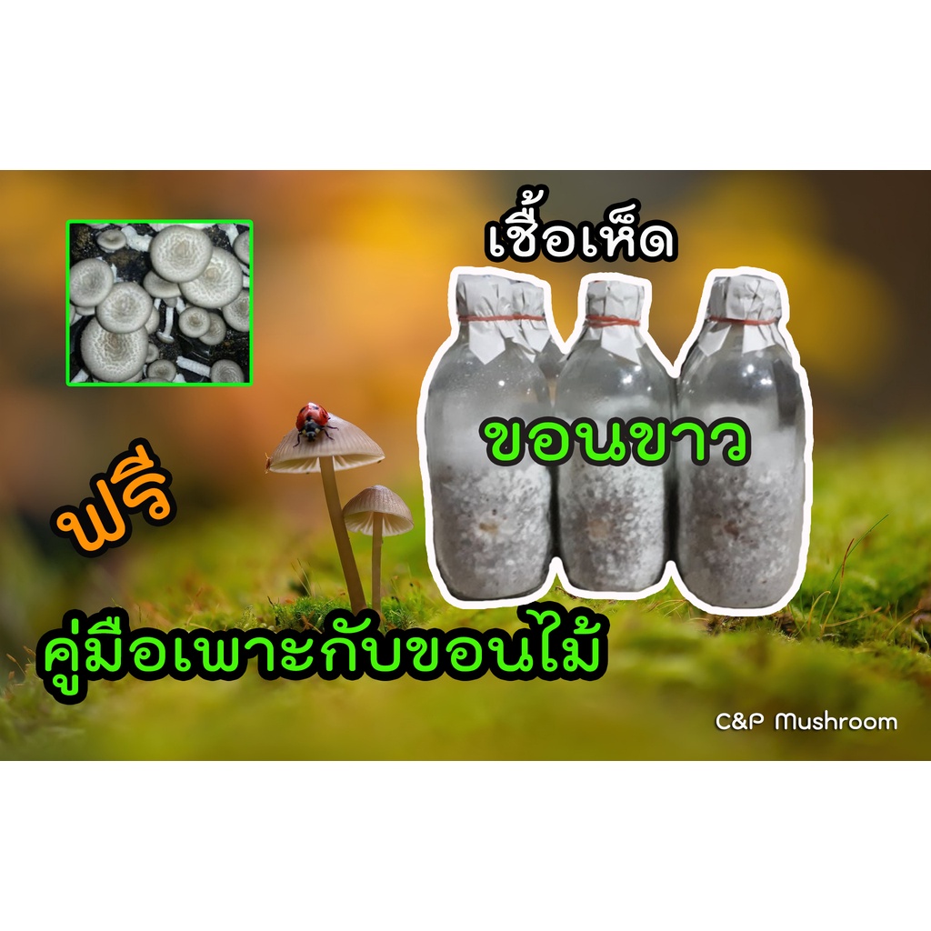 เชื้อเห็ดขอนขาว เมล็ดข้าวฟ่าง ชุด 5 ขวด พร้อมคู่มือเพาะกับขอนไม้