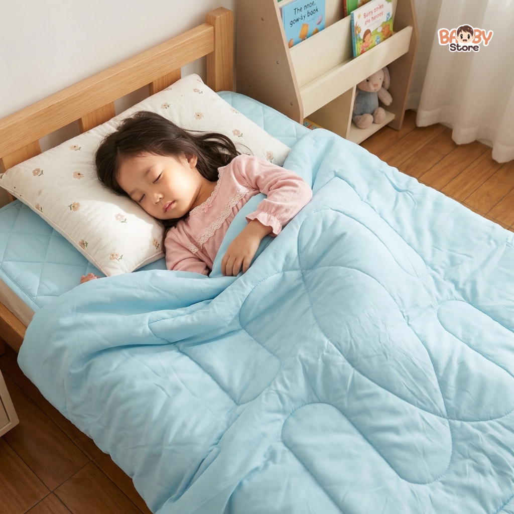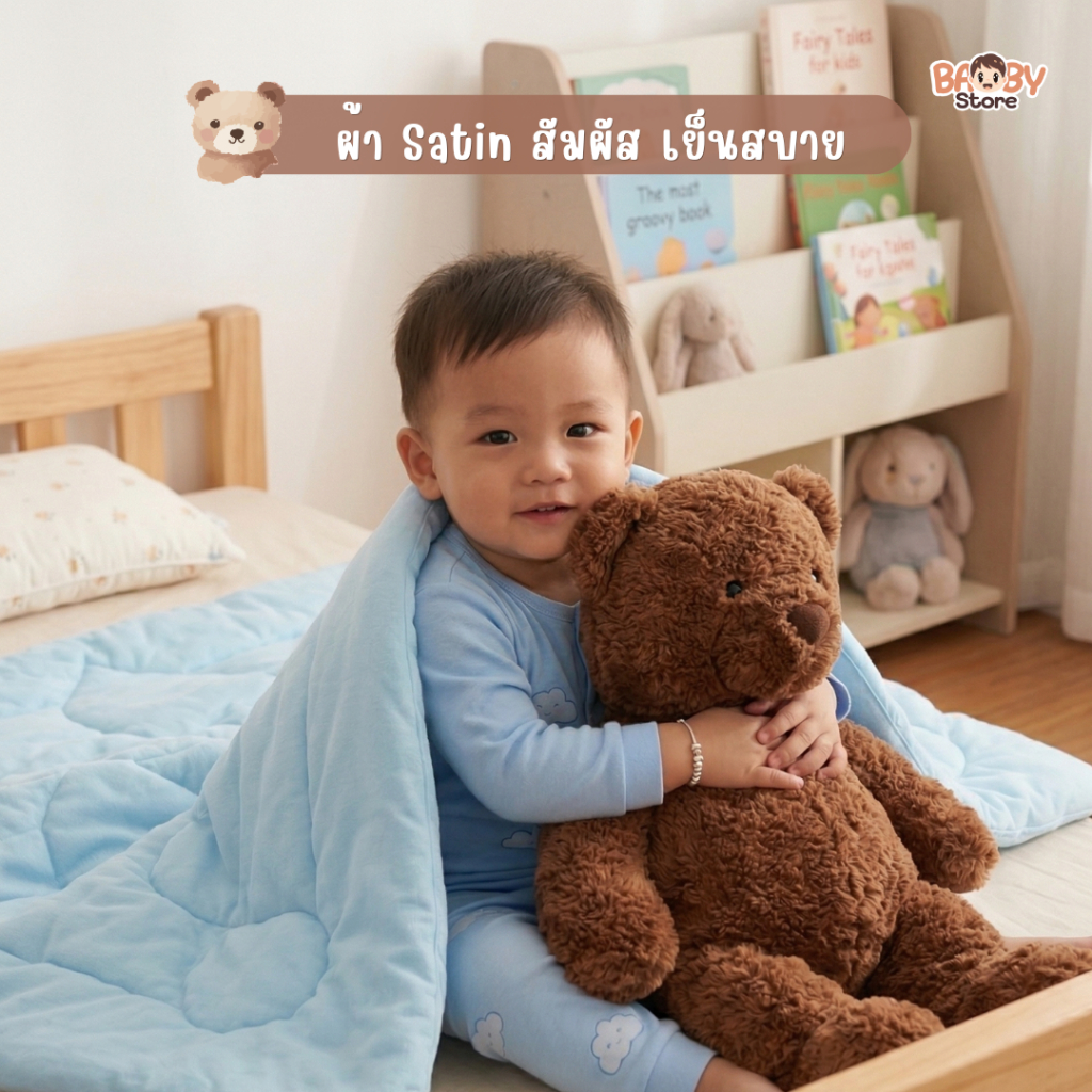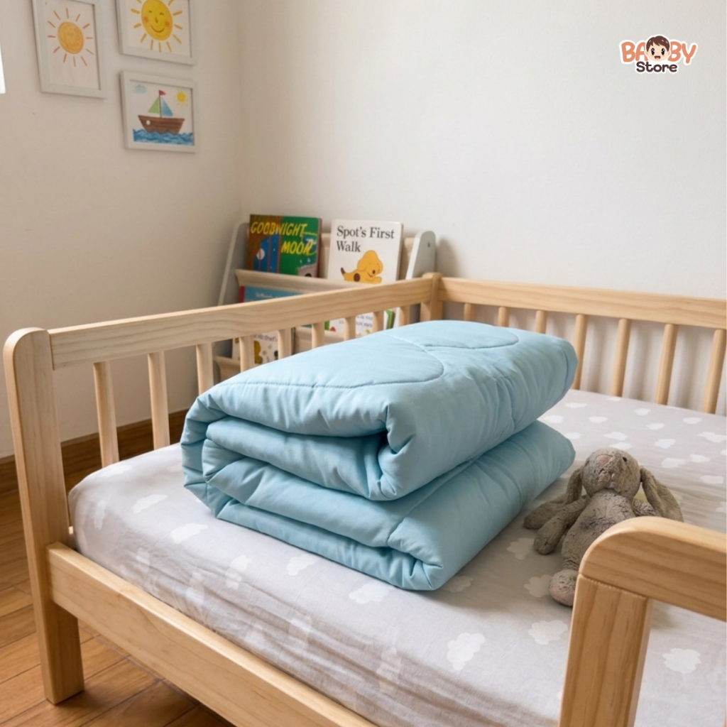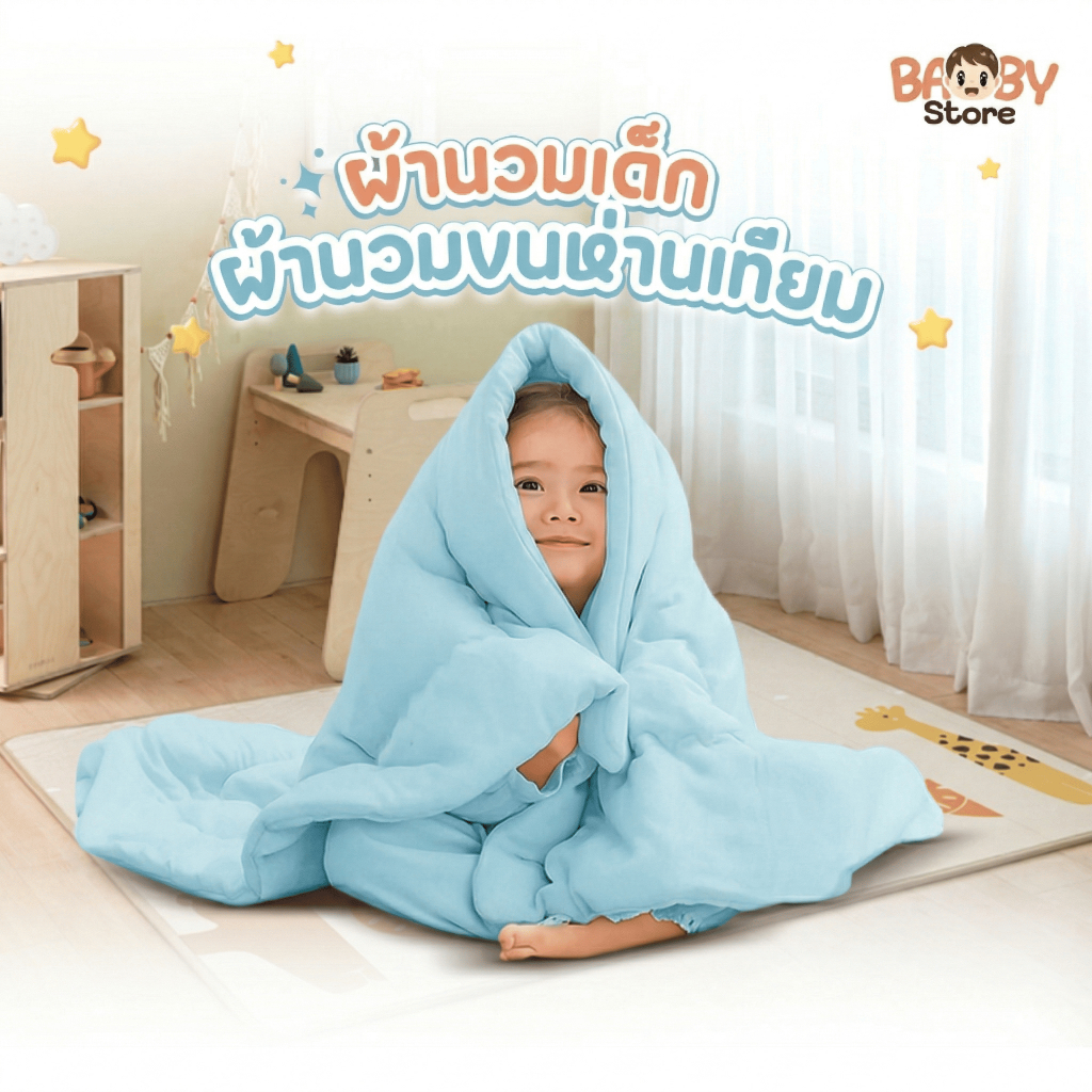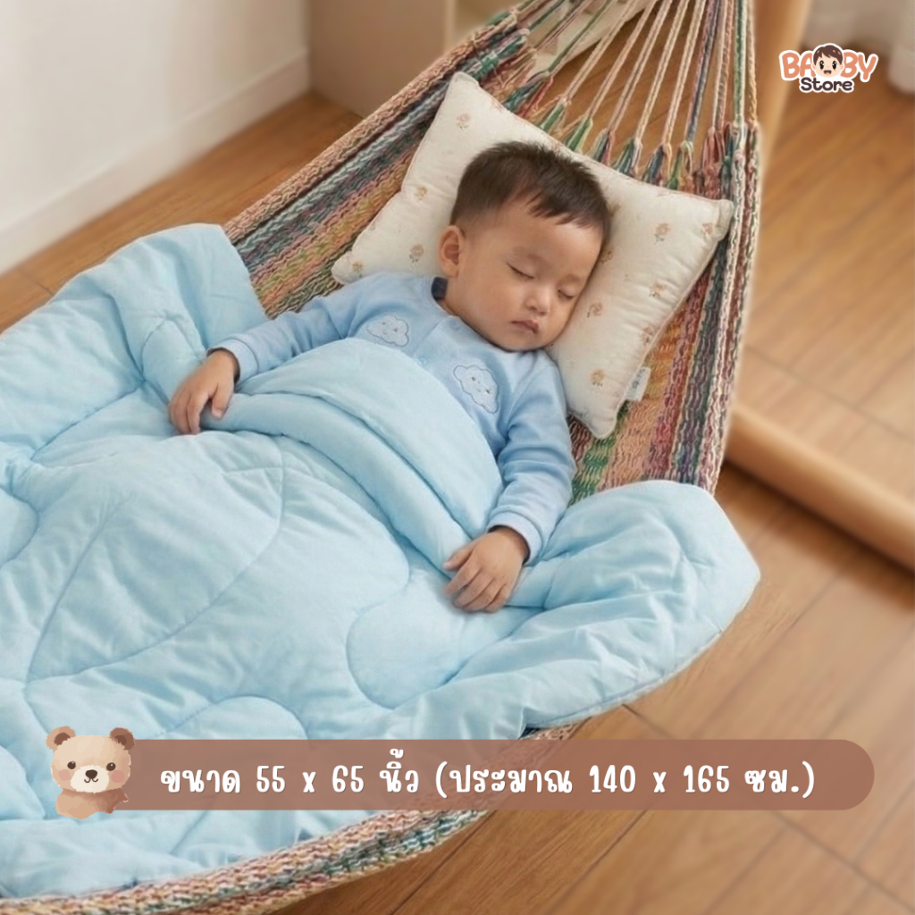 Baby ผ้านวมเด็ก ผ้าแบมบูเย็น อากาศร้อนนอนสบาย ขนห่านเทียม เกรดพรีเมียม สัมผัสนุ่ม สำหรับเด็กผิวแพ้ง่าย (สีฟ้าพาสเทล)
