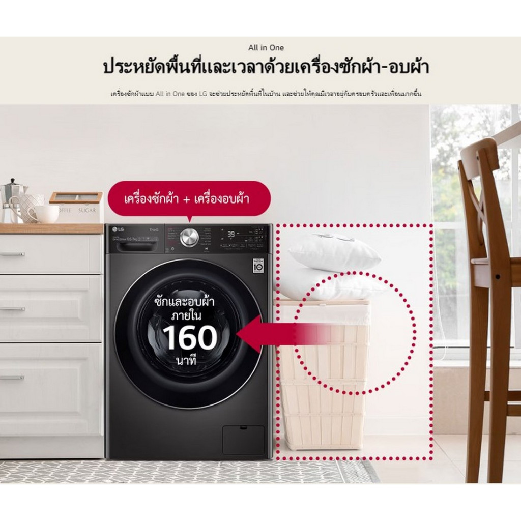 [ผ่อน0%] LG เครื่องซักผ้าฝาหน้า ซัก 13 KG / อบ 8 KG FV1413H4M สี Black Steel (ชลบุรีส่งฟรี)