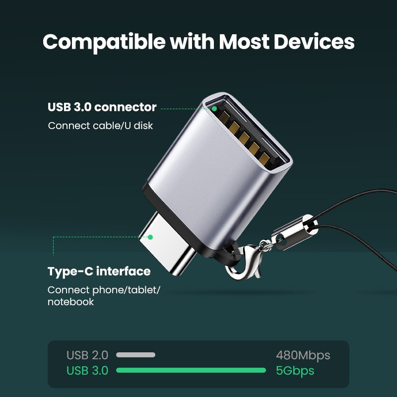 UGREEN ตัวแปลงอะแดปเตอร์ USB Type C ตัวผู้เป็น USB3.0 หญิงสําหรับ Macbook Xiaomi Samsung PC แล็ปท็อป