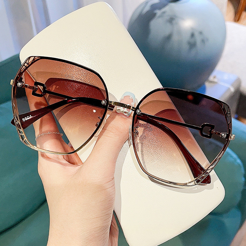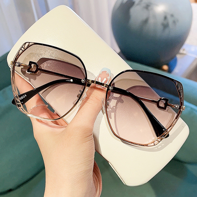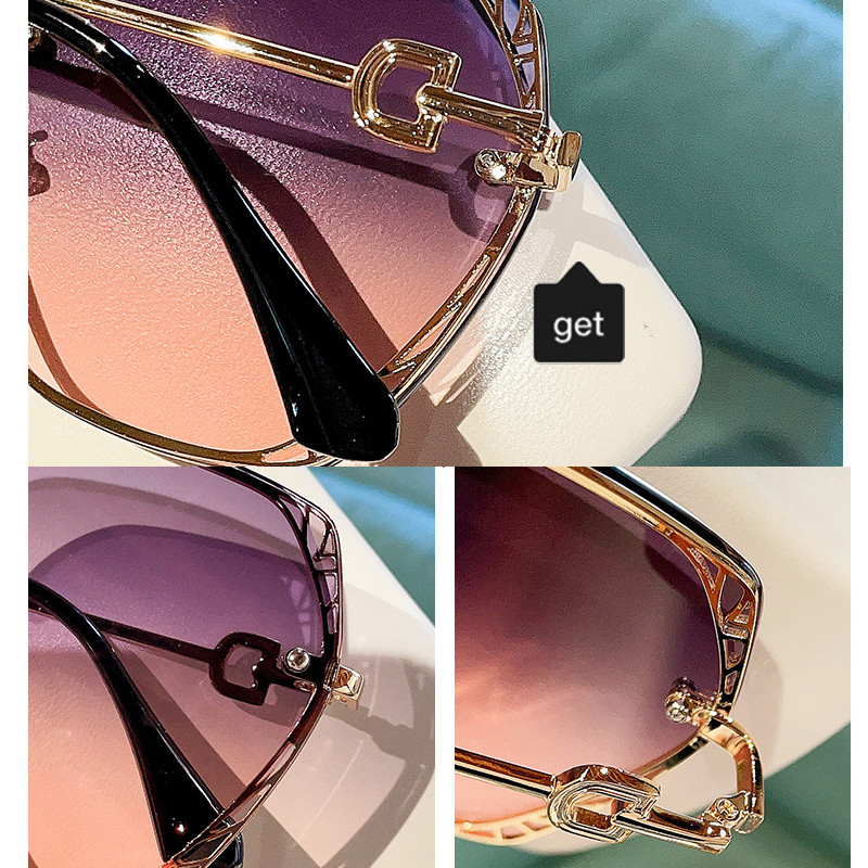 (AIMUJAKE) แว่นกันแดดขอบตัดโลหะโพลีโกลมันยุโรปและสหรัฐอเมริกาแฟชั่นแว่นกันแดดป้องกันรังสีอัลตราไวโอเลตหญิง