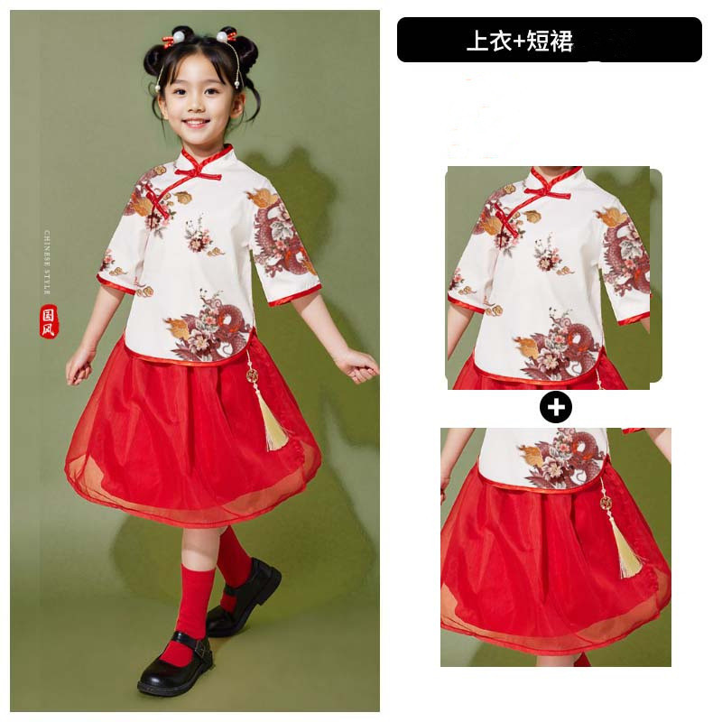 Local Shipping ชุดเสื้อผ้าปีใหม่จีนและฮันฟู สไตล์โบราณสำหรับเด็ก และเครื่องแต่งกายสำหรับนักเรียนประถม