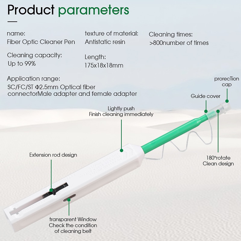 น้ํายาทําความสะอาดไฟเบอร์ออปติก SC/FC/ST เครื่องมือทําความสะอาด 2.5 มม.ตัวเชื่อมต่อสากลปากกาทําความสะอาดไฟเบอร์ออปติก Optical ทําความสะอาดที่สมบูรณ์