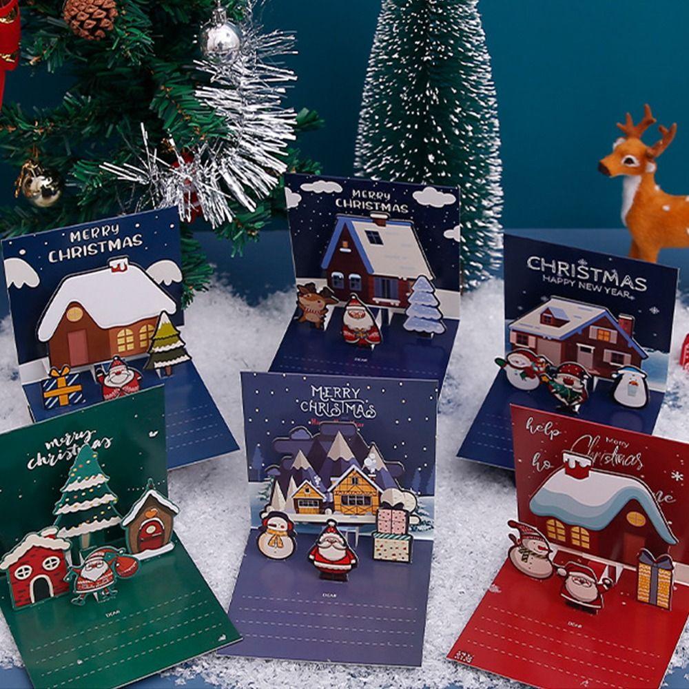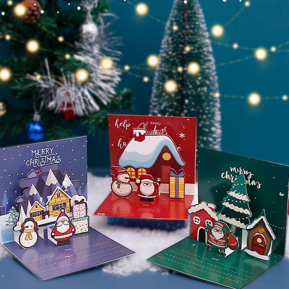 CRISP Merry Christmas 3D การ์ด, ต้นคริสต์มาสลายมือคริสต์มาส Pop-Up การ์ด, พรน่ารักพับขอบคุณการ์ดอวยพรปีใหม่ Festivital ของขวัญ