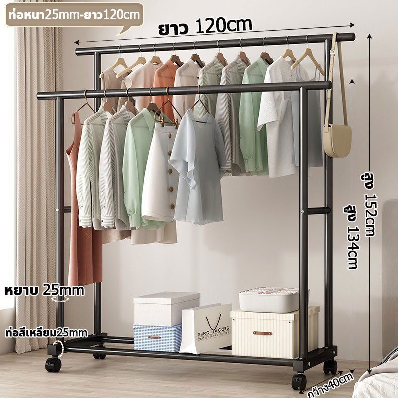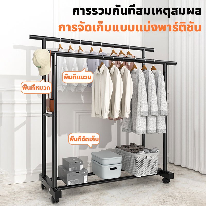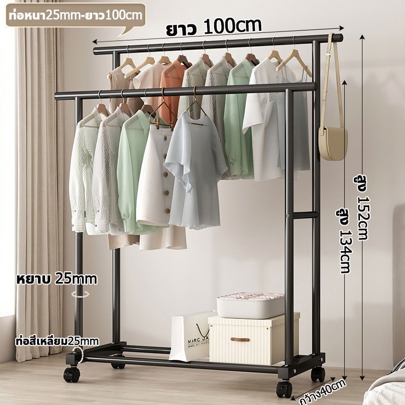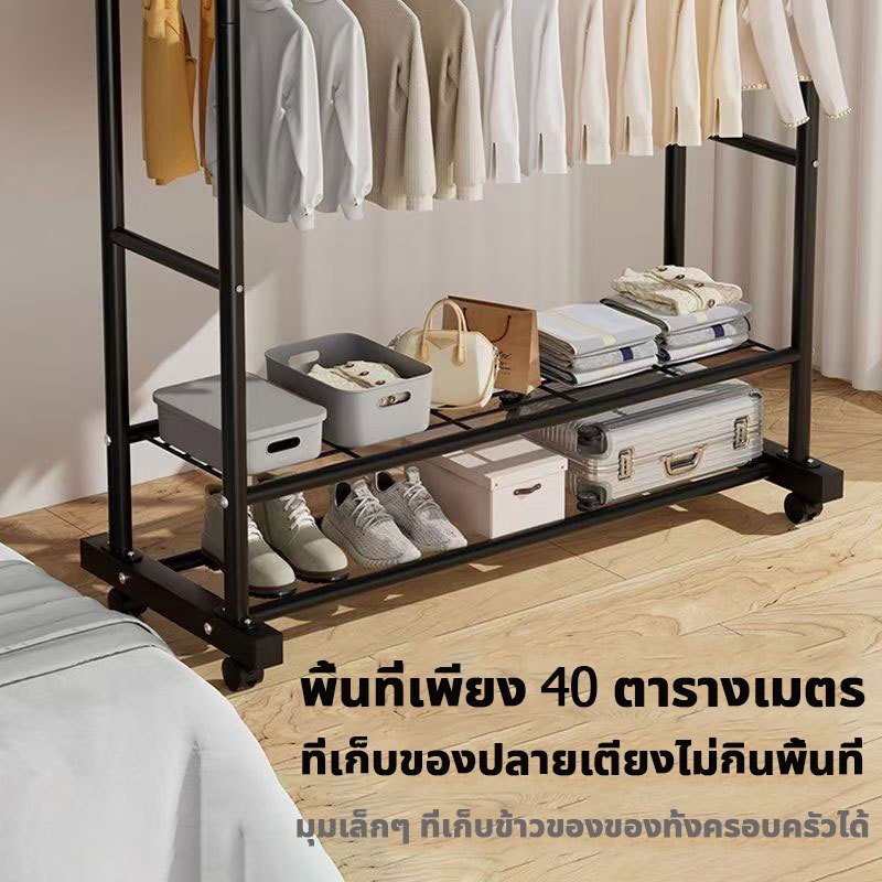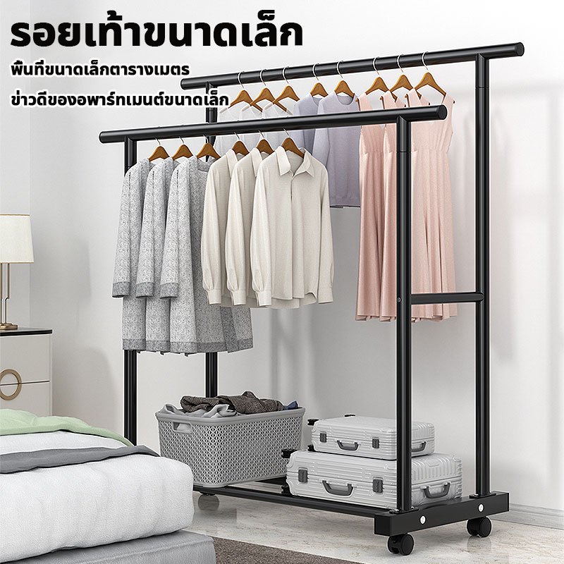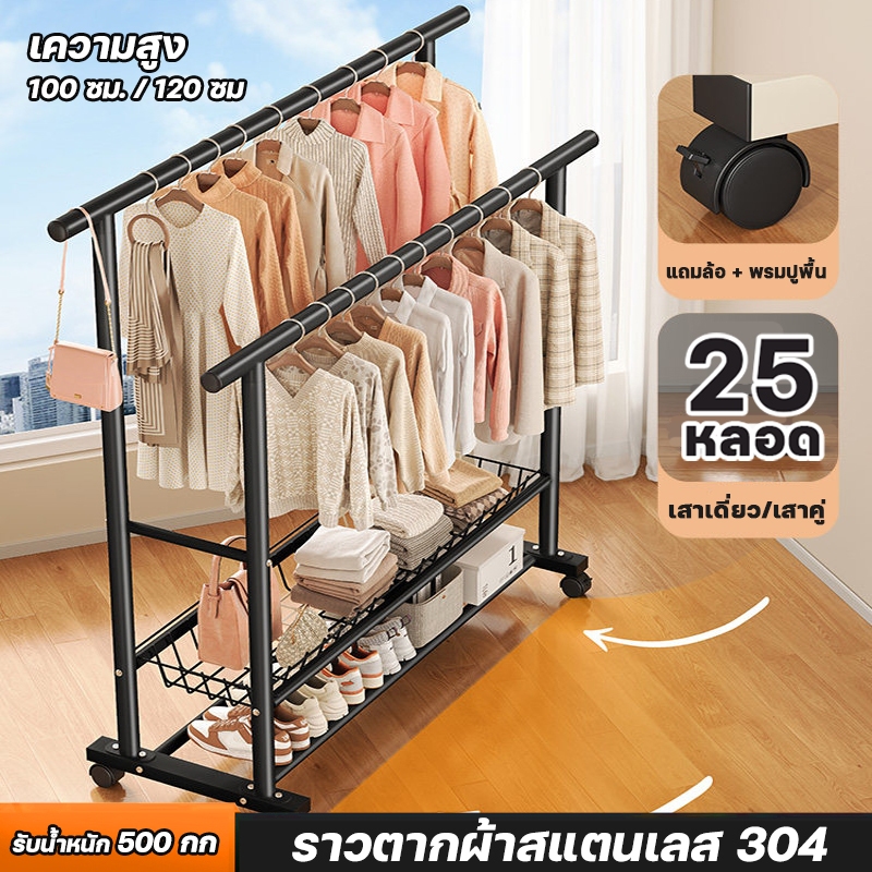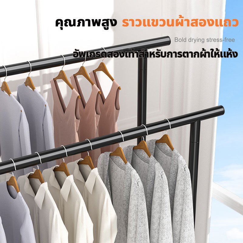 📦จัดส่งจากกรุงเทพฯ📦ราวตากผ้าในบ้าน แบบตั้งพื้น แบบคู่เสาหนา แข็งแรง ทนทาน พร้อมล้อ รับน้ำหนัก 50 กก ราวตากผ้าสแตนเลส