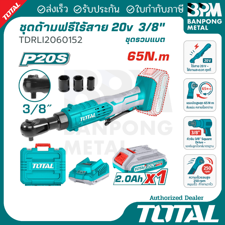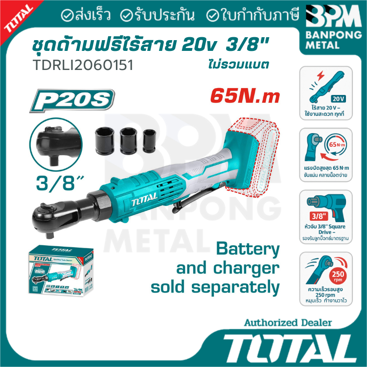 TOTAL ชุด ประแจ ด้ามฟรี ไร้สาย 20V 65 Nm. 3/8" รุ่น TDRLI2060152 และ TDRLI2060151 (เครื่องเปล่า)
