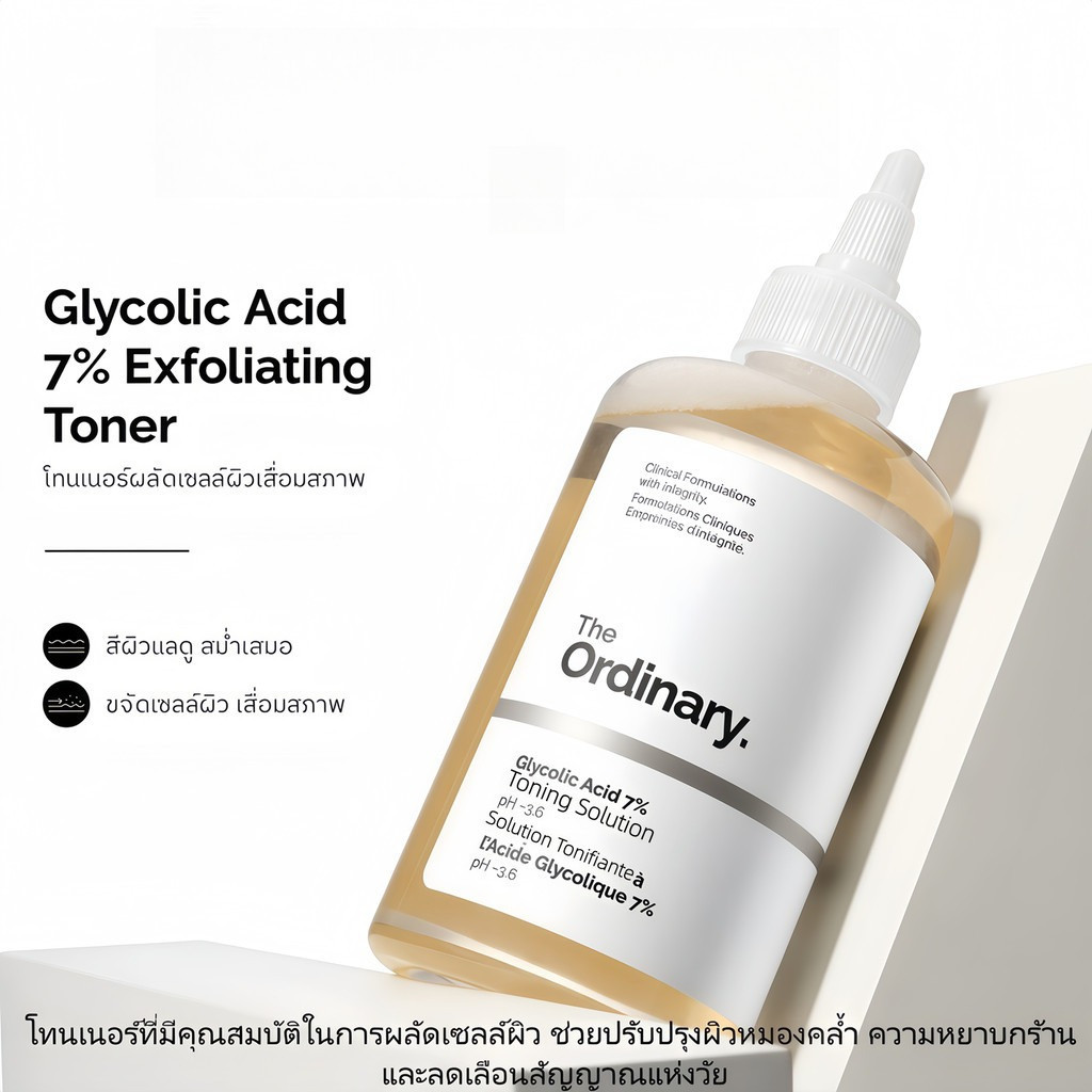 The Ordinary Glycolic Acid 7% Toner 240ml | โทนเนอร์ผลัดเซลล์ผิว ลดสิวเสี้ยน ผิวเรียบเนียน กระจ่างใส