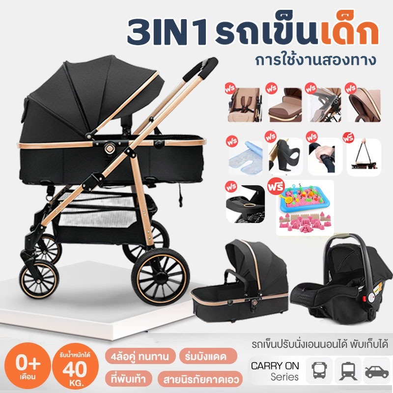 รถเข็นเด็ก 3in1 ของขวัญ 9 ชิ้นแถมฟร ถอดออกเป็นกระเช้าได้ เข็นได้2ทิศทาง รถเข็นเด็กแรกเกิด พับได้ พกพาสะดวก